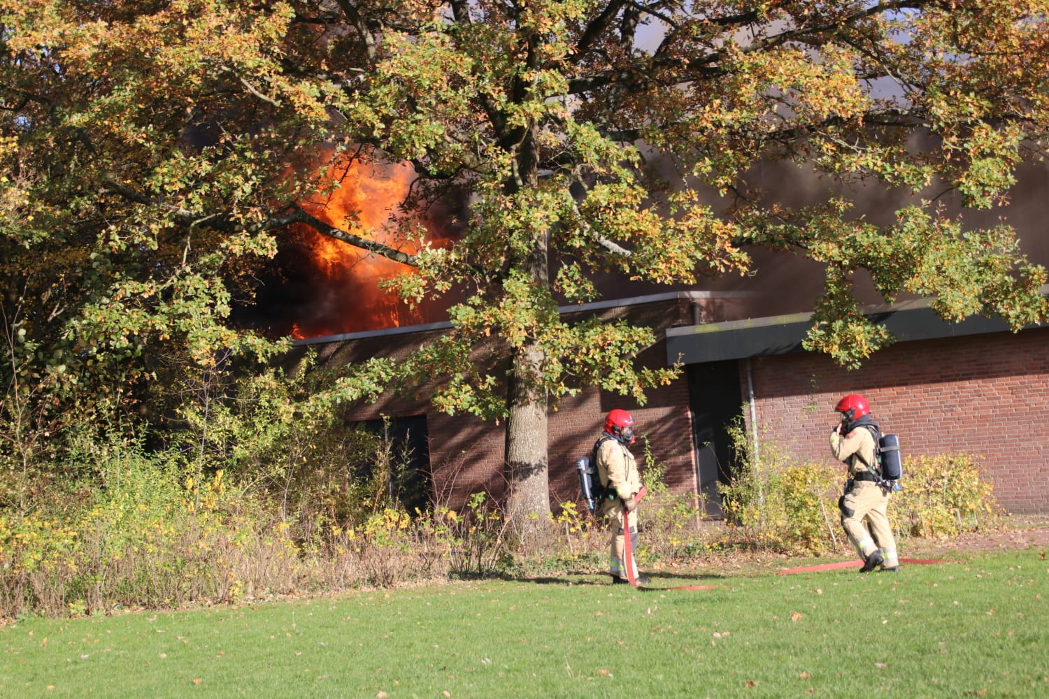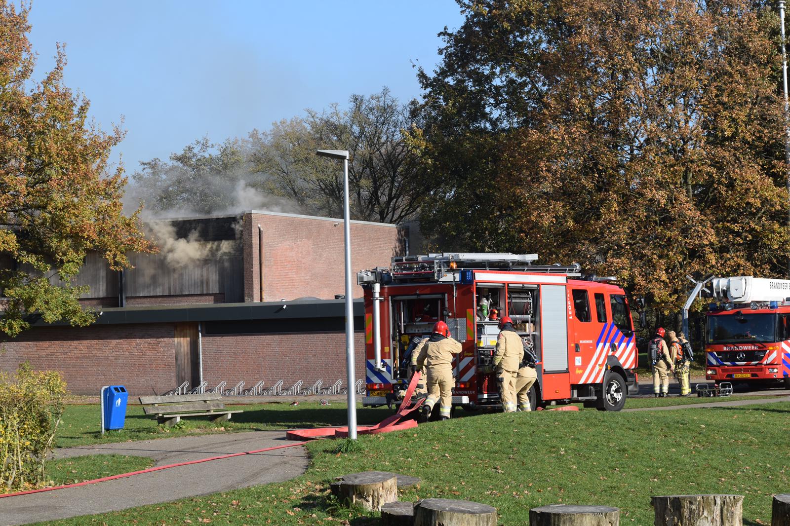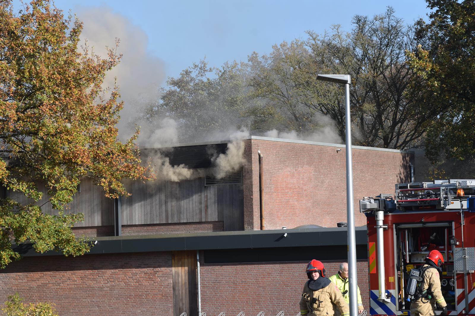 De brand leek onder controle maar laait opnieuw op. “De vlammen slaan nu uit een bijgebouw dat aan de gymzaal vastzit, vermoedelijk zijn dat de kleedkamers. Ook is er een nieuwe vuurhaard op het dak.”