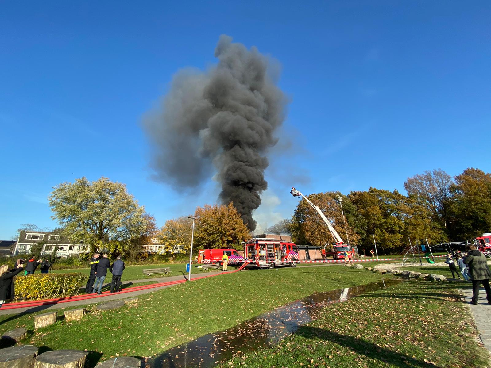 De brand trekt veel publiek. Het schoolplein van basisschool De Wissel staat vol met mensen. De omgeving is door de hulpdiensten afgezet.