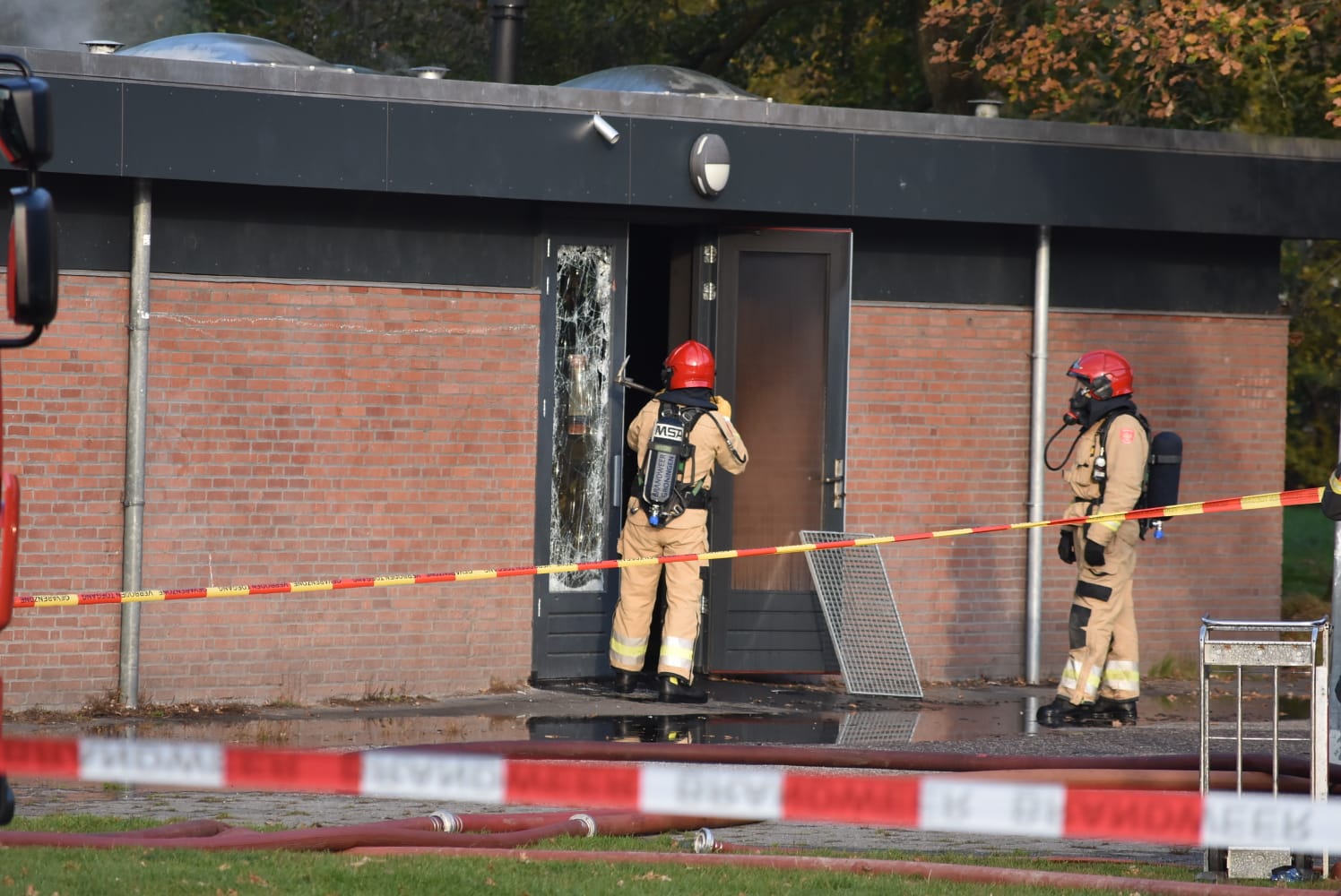 De kleedkamers vallen ten prooi aan de vlammen. Foto: Mike Weening – Weening Fotografie