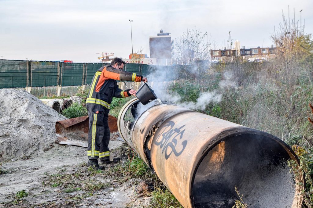 De melding van de brand kwam rond 15.10 uur bij de hulpdiensten binnen. “Op het terrein ligt een oude rioolleiding van enkele meters lang”, vertelt Ten Cate. “In die leiding is brand ontstaan. Dit gaat gepaard met flink wat rookontwikkeling.” De brand onder controle krijgen was voor de brandweer nog een hele klus. “De leiding ligt op een stuk terrein waar de brandweerauto niet kan komen. De slangen op de wagen zijn ook te kort om bij de vuurhaard te kunnen komen.”