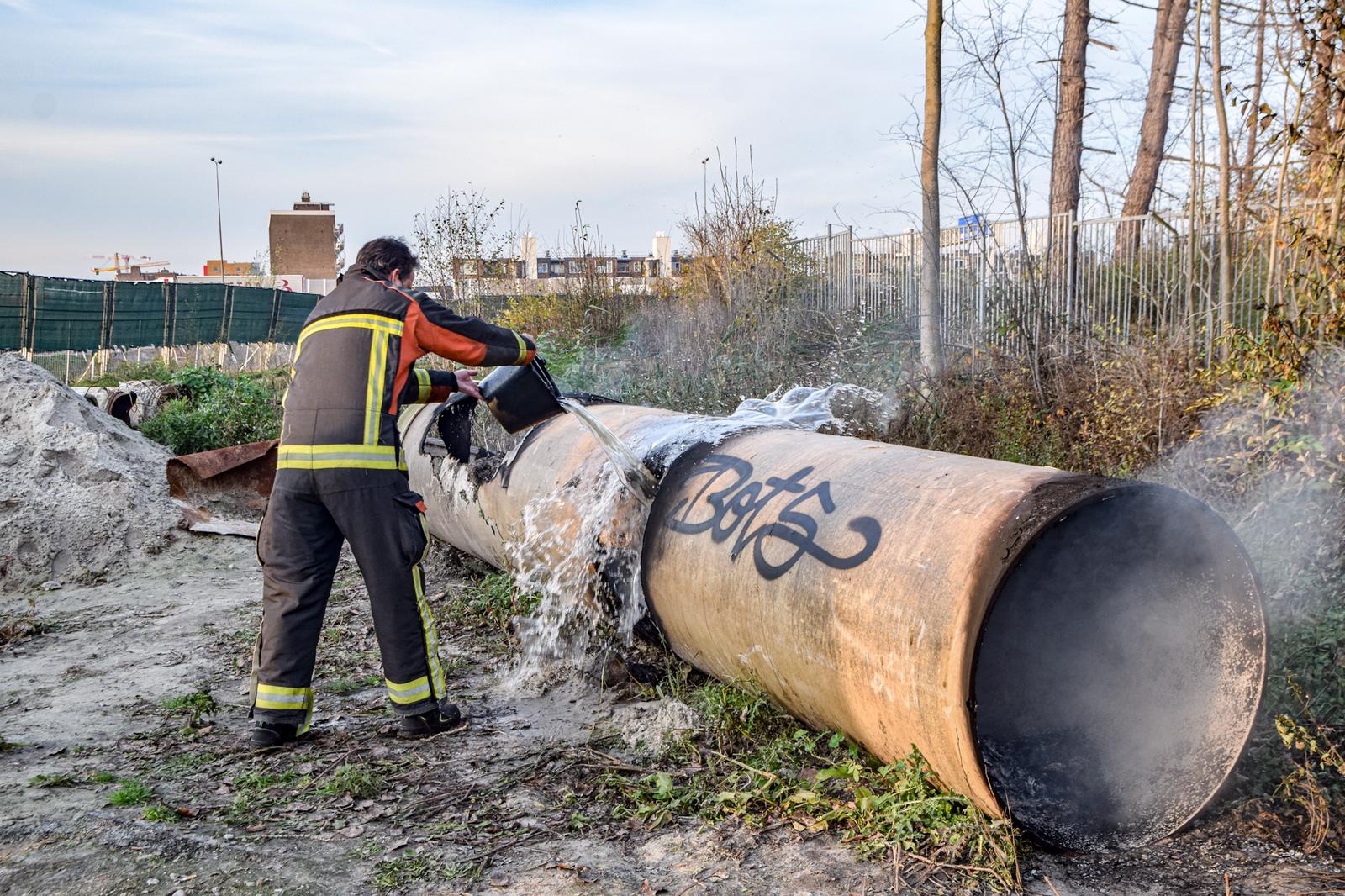 De melding van de brand kwam rond 15.10 uur bij de hulpdiensten binnen. “Op het terrein ligt een oude rioolleiding van enkele meters lang”, vertelt Ten Cate. “In die leiding is brand ontstaan. Dit gaat gepaard met flink wat rookontwikkeling.” De brand onder controle krijgen was voor de brandweer nog een hele klus. “De leiding ligt op een stuk terrein waar de brandweerauto niet kan komen. De slangen op de wagen zijn ook te kort om bij de vuurhaard te kunnen komen.”