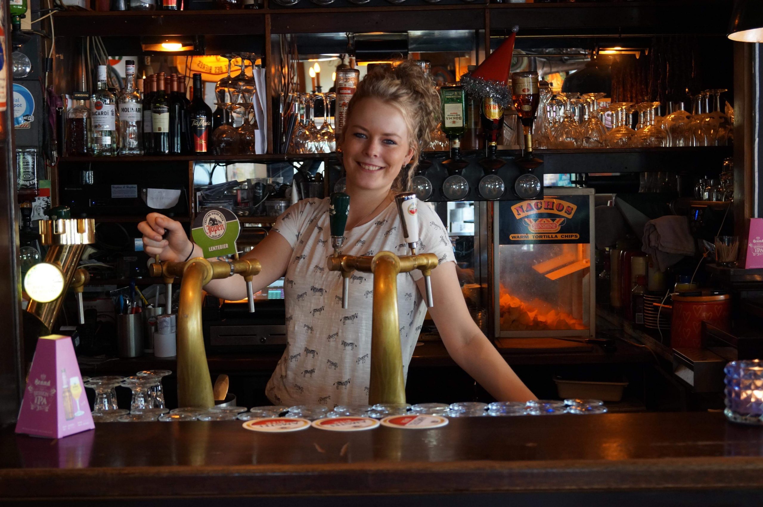 Eigenaresse Aileen Meijer achter de tap van café De Klikspaan. Foto: Café de Klikspaan