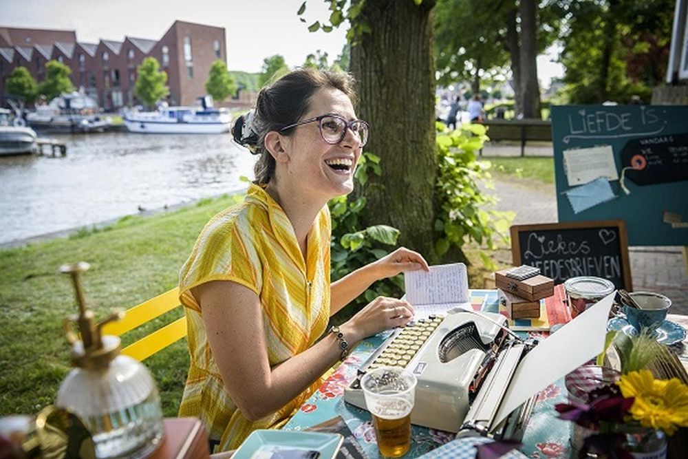 Een liefdesbode op haar typemachine - Foto: Korrezon