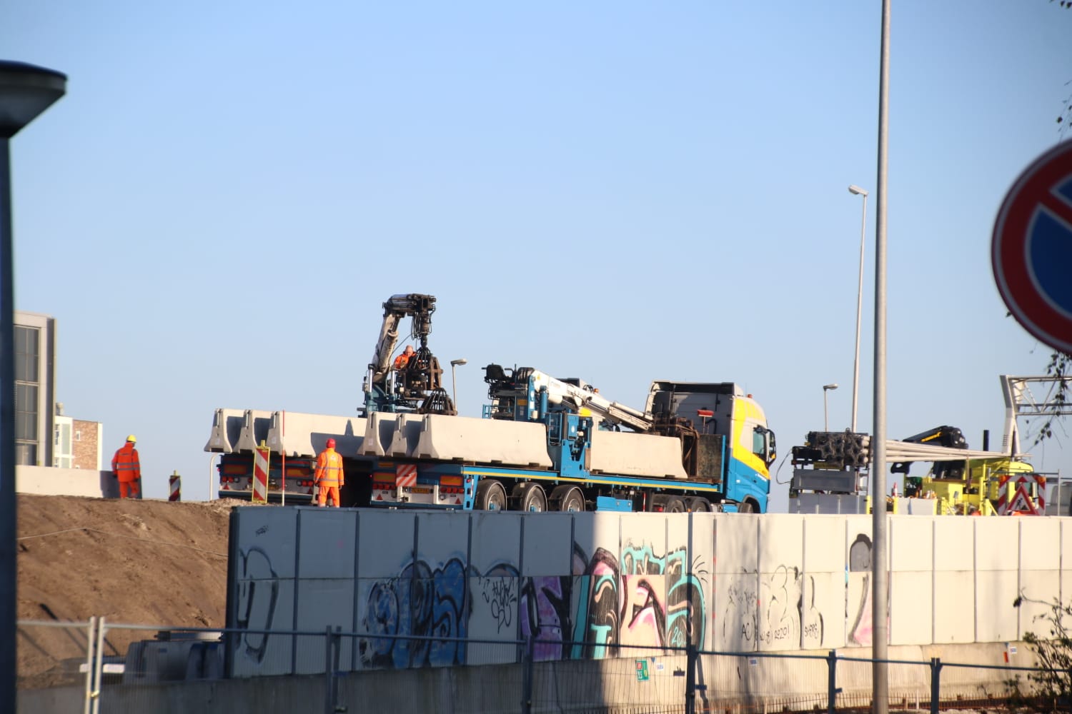 Afgelopen weekend was de zuidelijke ringweg deels afgesloten. Er werd hard gewerkt om de bestaande wegen aan te sluiten op het nieuwe viaduct.