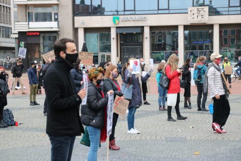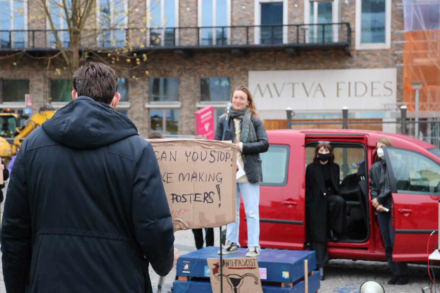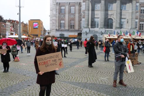 Op de Grote Markt hebben zondagmiddag tientallen mensen gedemonstreerd vanwege de aangescherpte abortuswet in Polen.