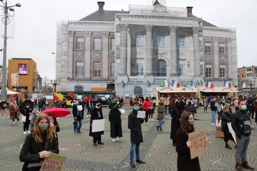 Demonstranten hielden zich tijdens de actie aan de coronamaatregelen. Zo hield men anderhalve meter afstand van elkaar en werden er mondkapjes gedragen. Verschillende demonstraten droegen protestborden bij zich.