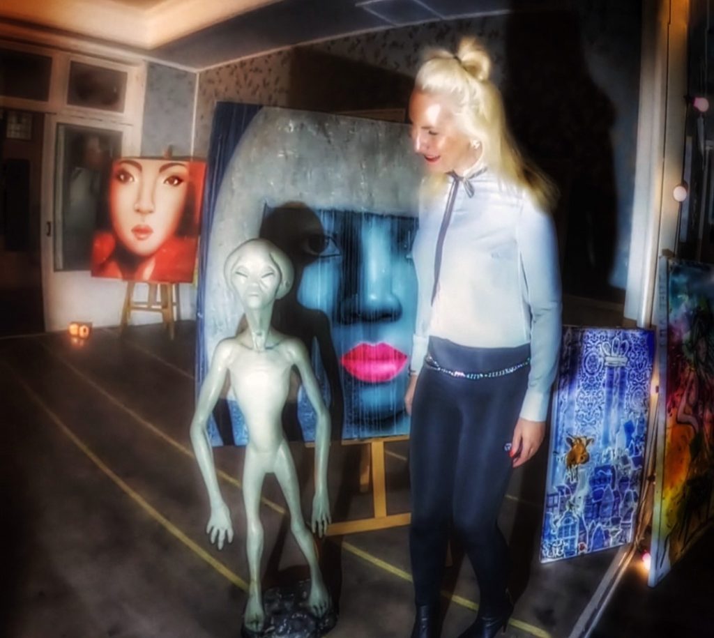 Mariska Beenen van gallery Dutch Art aan de Oosterstraat zit met haar handen in het haar. De alien die sinds twee maanden in de Oosterstraat voor haar galerie staat is zaterdagmiddag gestolen.