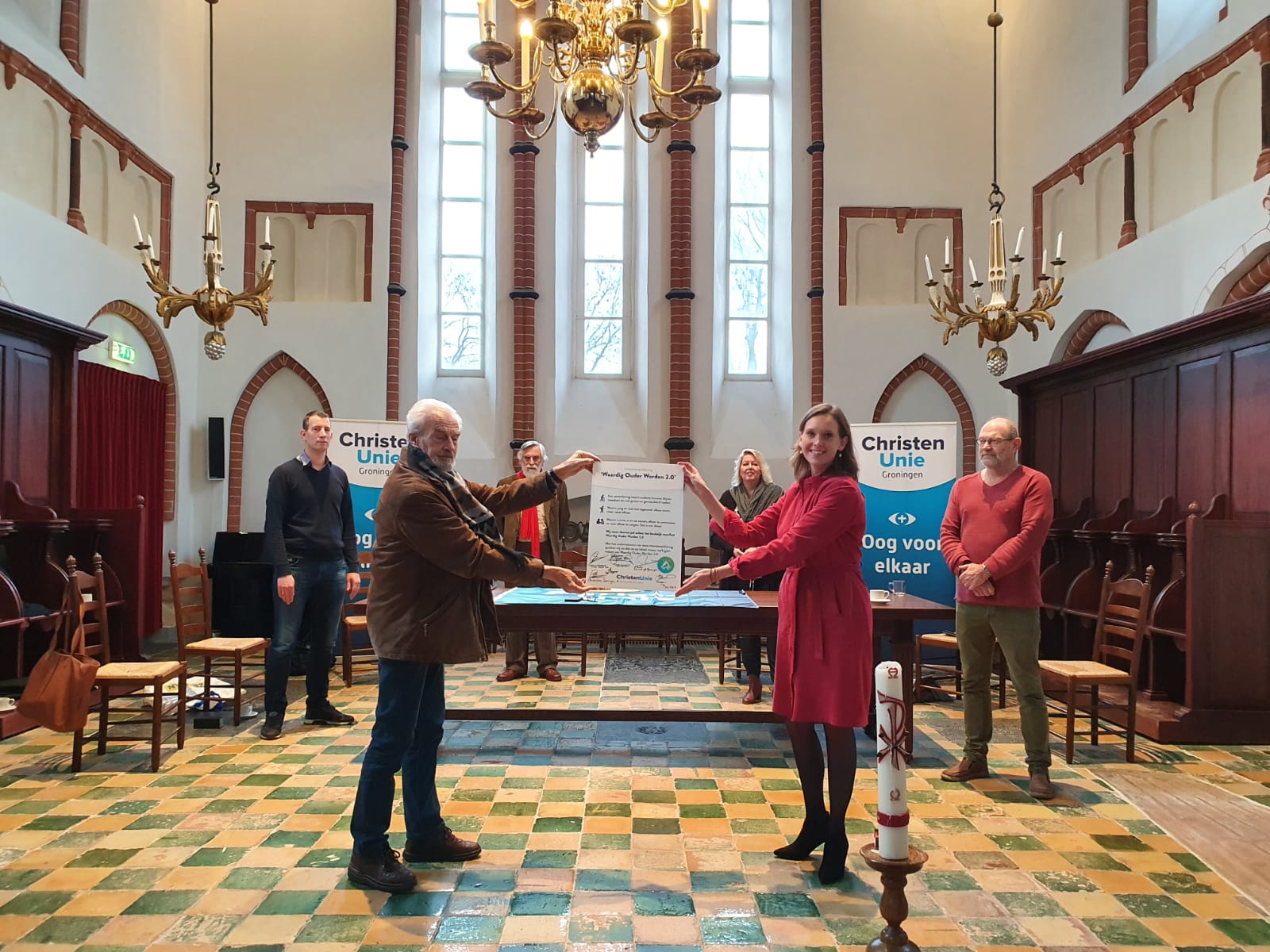 In de Kloosterkerk in Ten Boer hebben lokale afdelingen van de ChristenUnie samen met lokale partners zaterdagmiddag een convenant ondertekend voor waardig ouder worden.