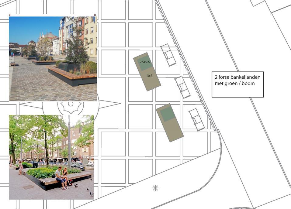 Met het plaatsen van de twee grote zitelementen komt het gemeentebestuur haar toezegging aan de raad na. Eerder werden drie zitbanken aan de noordzijde van het plein verwijderd door ABN-AMRO. De nieuwe banken van 7 bij 3 meter komen aan de oostzijde van het plein te staan, achter de huidige bushaltes. Ze krijgen gezelschap van wat groen.