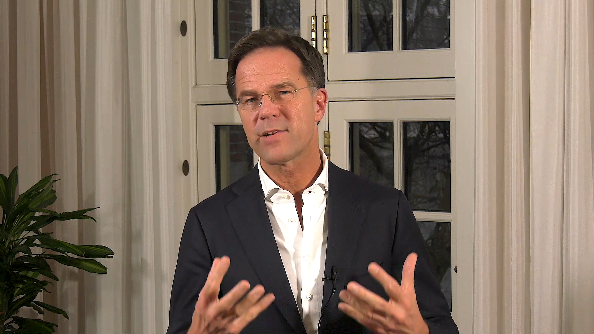 Screencap uit de videoboodschap van premier Rutte voor RGA