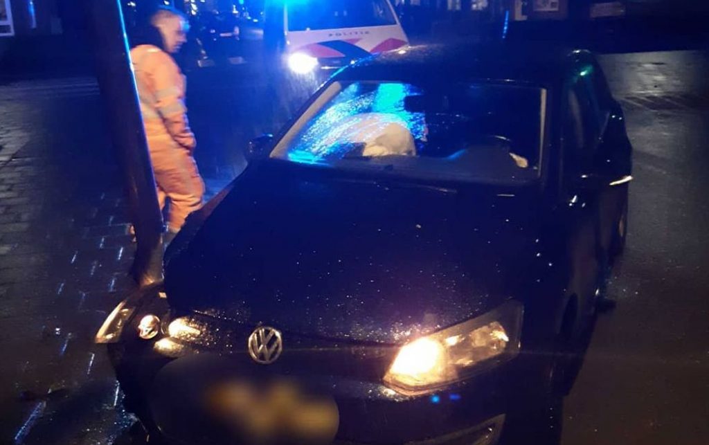De bestuurder van de personenauto, die bij een uitwijkmanoeuvre tegen een lantaarnpaal aan reed, bleef ongedeerd.