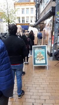 Ook bij smartshops en coffeeshops was het erg druk. Maar ook bij hobbywinkels stonden lange rijen. Zoals bij een kunstenaarswinkel in de binnenstad (foto).