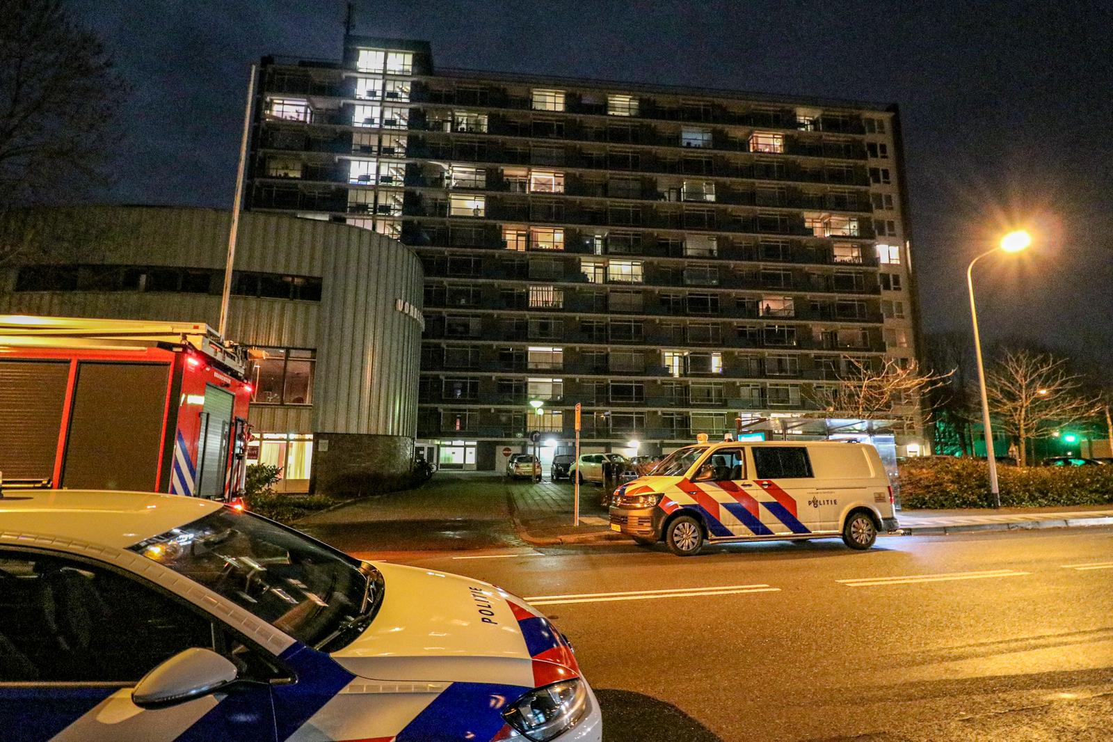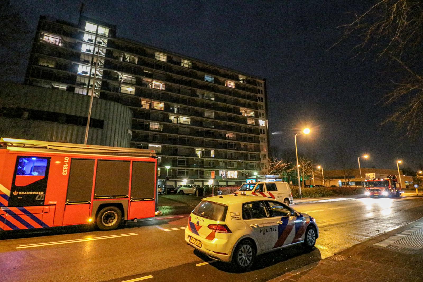 De hulpdiensten rukten in eerste instantie met groot materieel uit. Om 23.50 uur kwam de eerste melding binnen van een mogelijke woningbrand in de flat, waarop een tankautospuit en een hoogwerker werden opgeroepen. Korte tijd later werd opgeschaald naar ‘middelbrand’, waarop ook een tweede tankautospuit gealarmeerd werd. “Het valt allemaal wat mee”, vertelt Rick ten Cate van tencatefotografie.nl die enkele minuten na de brandweer arriveerde. “Van een agent kreeg ik te horen dat het gaat om verbrande tosti’s waardoor er een brandje is ontstaan.”