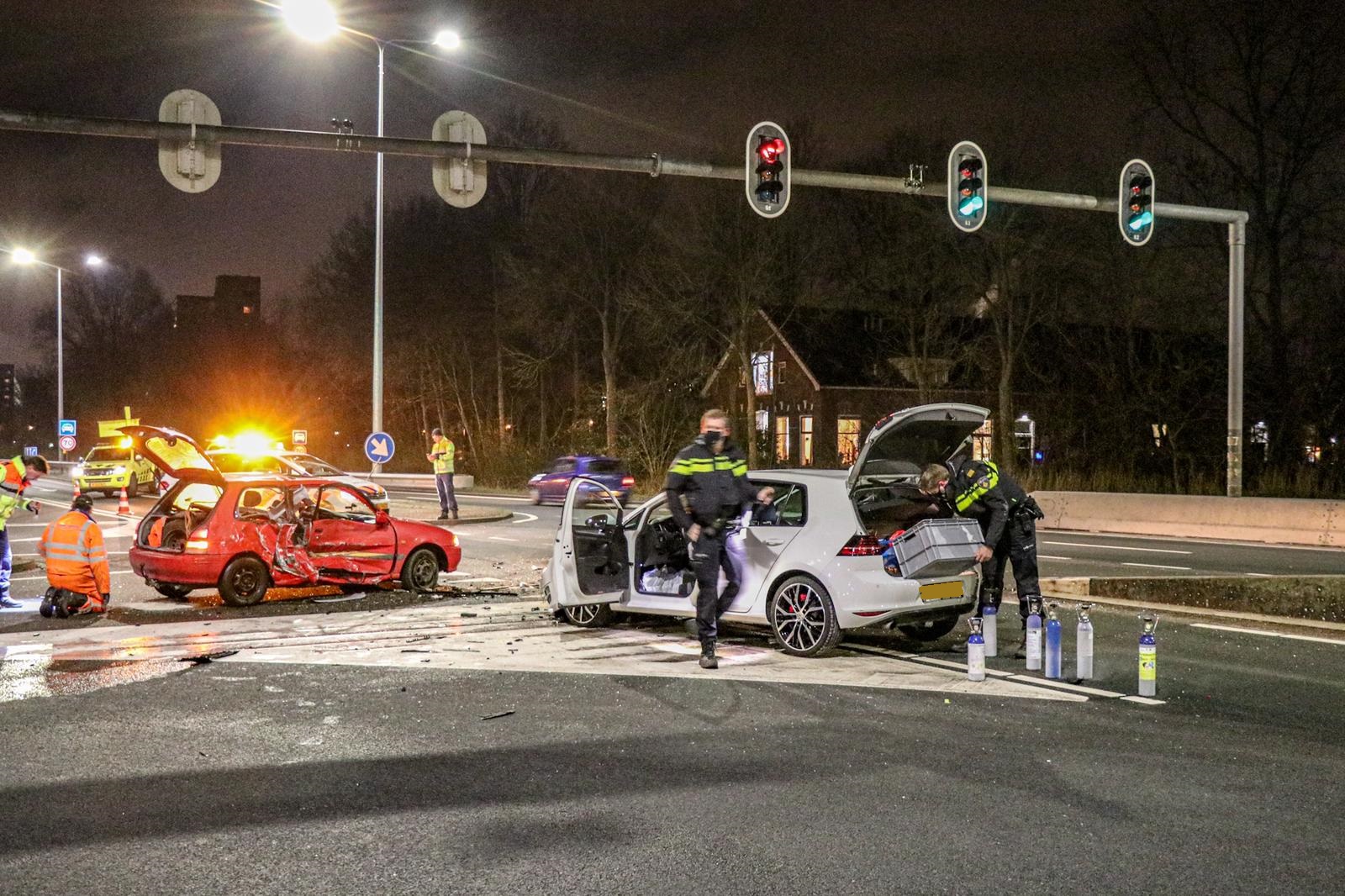 Bij een verkeersongeluk zaterdagavond op de Friesetraatweg zijn twee personenauto’s flink beschadigd geraakt. In één van de auto’s werden zes lachgastanks aangetroffen. Dat meldt Rick ten Cate van de incidentenwebsite tencatefotografie.nl.