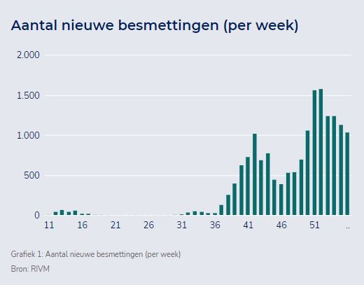 Opvallend aan de leeftijdsverdeling in de afgelopen week is dat het aandeel nieuwe besmettingen onder 65-plussers gedaald is. Waar dit vorige week nog op 22% lag is dit nu gedaald naar 18%. De besmettingsgraad bij kinderen in de leeftijdscategorie 0 tot 15 jaar lag op 5%, in de groep 15-19 jaar op 9% en in de leeftijdsroep 20 tot 29 jaar op 16%. De meeste besmettingsgevallen werden gevonden in de leeftijdscategorie 30 tot 65 jaar. Daar gaat het om een percentage van 53 procent.”