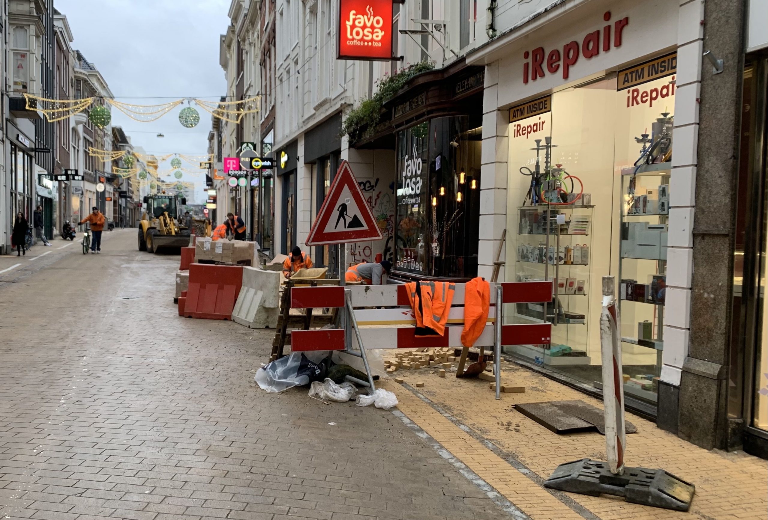 In opdracht van de gemeente Groningen is een aannemer maandag begonnen met het vervangen van de gele stenen in de Herestraat en de Zwanestraat.
