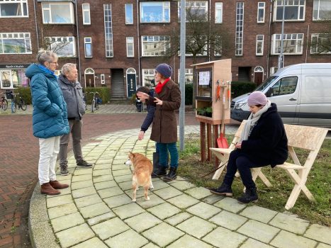 Buurtbewoners laten zich informeren over de BIJbliotheek. Foto: Agnes Bakker