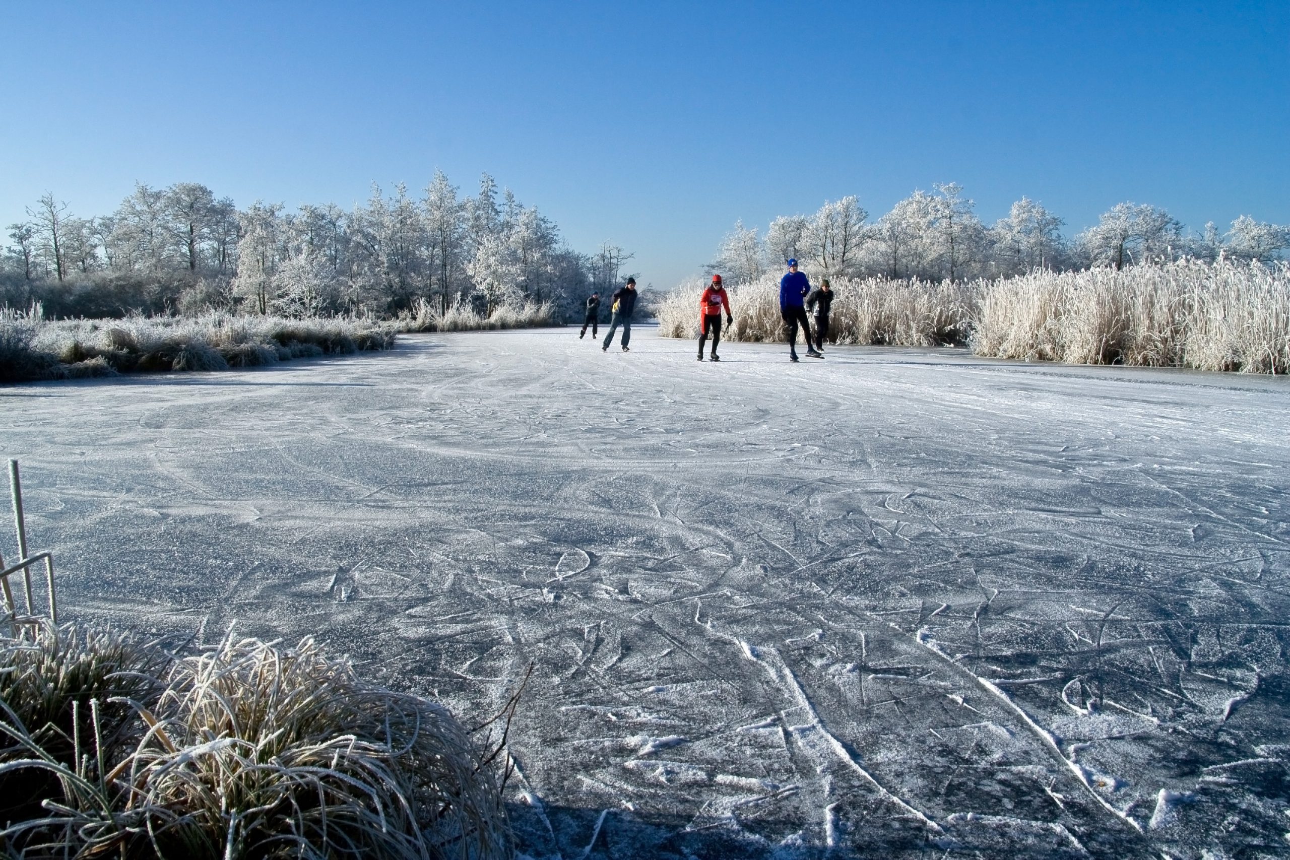 “Als we inderdaad de temperaturen gaan behalen die ik voorspel dan moet het zondag of maandag mogelijk zijn om de schaatsen onder te binden op een ondergelopen weiland.” Volgens Kamphuis is het spannend wat er daarna gaat gebeuren. “Het is niet uit te sluiten dat de winter zich volgende week de hele week weet te handhaven. En mogelijk is er zelfs in de week verscherping mogelijk. De kans op winterse buien op de grens tussen zachte en koude lucht lijken ook nog steeds in het programma te zitten.”