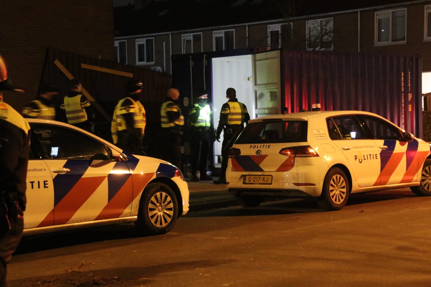 De zeecontainer werd door de politie afgesloten. De politie en de Mobiele Eenheid bleven aanwezig ter bescherming van de brandweer, die de buitenbrand bluste en de resten van het afval verwijderde.