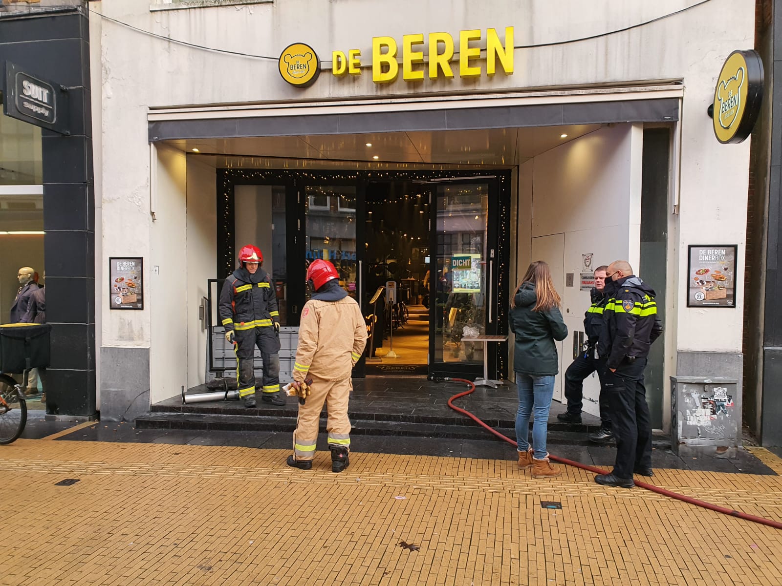 Restaurant De Beren aan de Brugstraat in de binnenstad van Groningen is zaterdag gewoon geopend voor online bestellingen. De Groninger brandweer moest zaterdagochtend in actie komen in het restaurant vanwege een vermeende brand.