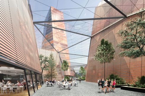 Er is niet alleen een grote sporthal ingetekend, maar ook twee grote torens: “Daar kunnen mensen wonen, misschien shortstay, een hotel”, aldus Schokker. “Maar je kunt ook denken aan ruimtes voor het UMCG, plekken om te logeren voor als je iemand in het ziekenhuis bezoekt. Misschien een zorgplein”.