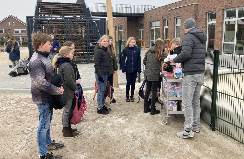Maandagochtend kregen alle gezinnen van CBS De Fontein de ingrediënten voor een doe-opdracht thuisbezorgd. Deze opdracht heeft, als het allemaal goed gaat, een heerlijke cake als eindresultaat. Ook hadden de kinderen van groep 7 en 8 een korte pleinontmoeting. Ze deden samen met de leerkracht een spelletje en sommigen kregen nog een schrift of een vulling