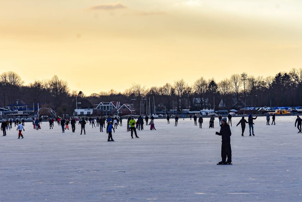 Het is rond 17.30 uur als fotograaf Ruben Huisman van 112groningen.nl de zon in het westen weg ziet zakken. “Het begint weer rustig te worden. Het is al bij lange na niet meer zo druk als eerder vanmiddag. De verkeersregelaars zijn inmiddels ook al op huis aan. Zo direct stappen de laatste schaatsers van het ijs. Ze moeten ook wel want de schemering wint snel terrein, de avond gaat vallen.”