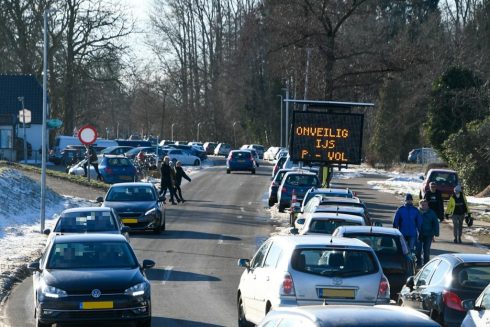 Eerder in de middag was het nog druk op en rond het Paterswoldsemeer en Hoornsemeer. De gemeente sloot de Hoornsedijk af voor automobilisten en ook de parkeerplaats bij Kaap Hoorn was helemaal vol. De gemeente riep zelf mensen op om niet meer naar het gebied te komen. “Het was echt ontzettend druk”, zag fotograaf Mike Weening van Weening Fotografie die bij Kaap Hoorn stond. “Ik heb het niet eerder zo druk gezien hier op deze plek. Op het ijs is er genoeg ruimte, maar wanneer de schaatsen ondergebonden worden wordt lang niet altijd anderhalve meter afstand gehouden.”
