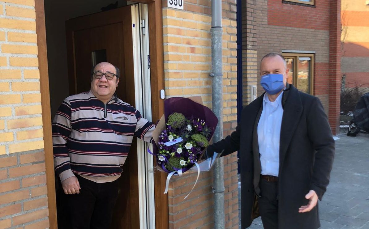Woningcorporatie De Huismeesters heeft vrijdagmiddag de duizendste van de 1.400 verbeterde woning opgeleverd. De bewoner van een woning aan de Wibenaheerd in Beijum kreeg daarom een bloemetje van de woningcorporatie.