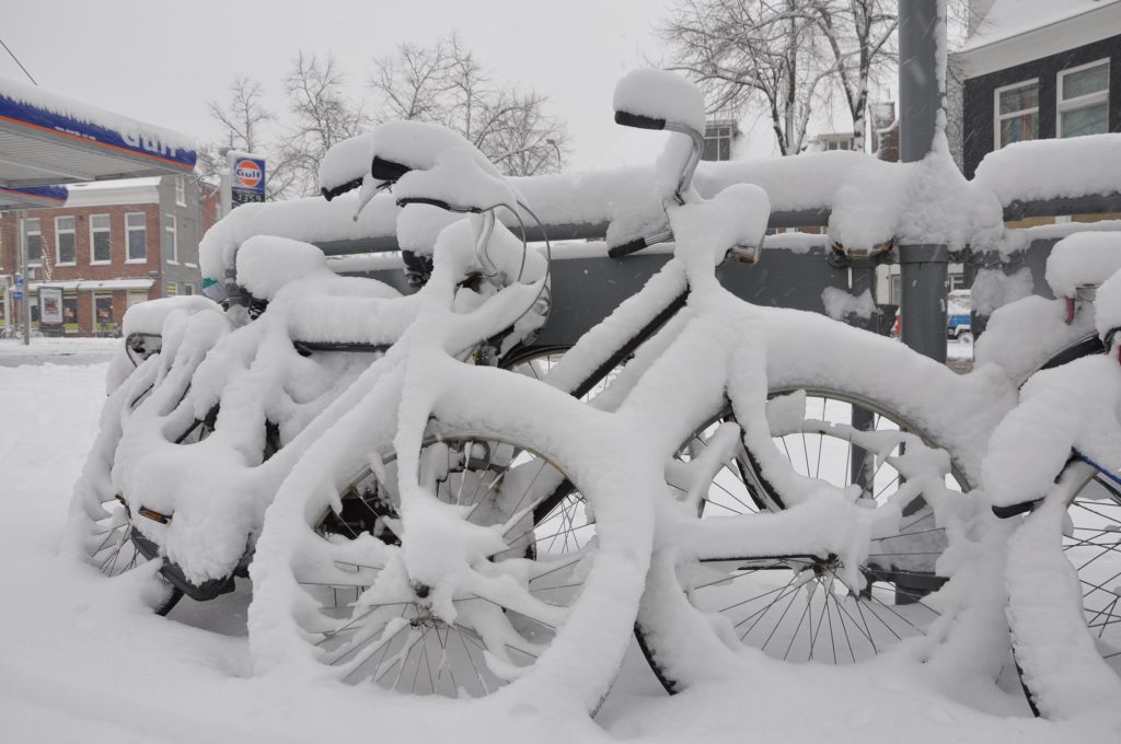 De man liep, met zijn fiets aan de hand, door de sneeuw toen hij op een kruispunt de controle over zijn rijwiel verloor. Zijn boodschappen vielen uit zijn fietstassen en toen hij deze aan het oprapen was, ging een dief er met zijn fiets en de rest van de boodschappen vandoor.