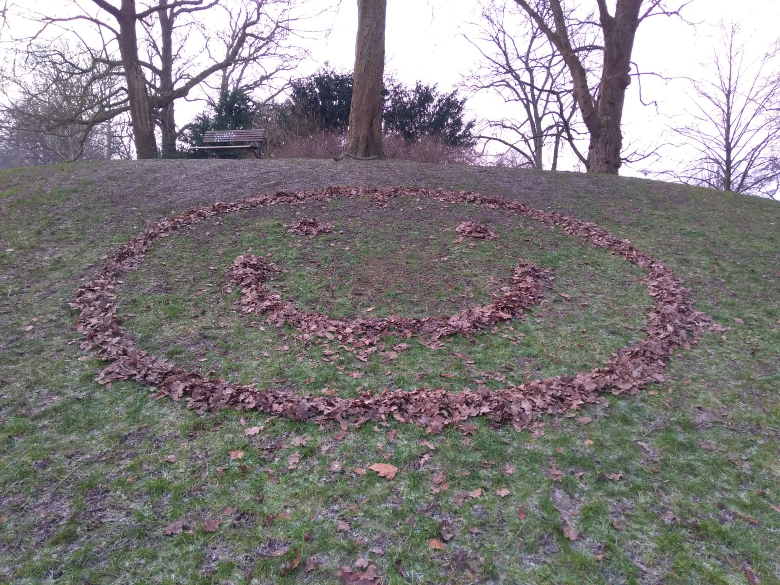 In december doken dergelijke smileys van bladeren ook al op in de Oosterparkwijk.