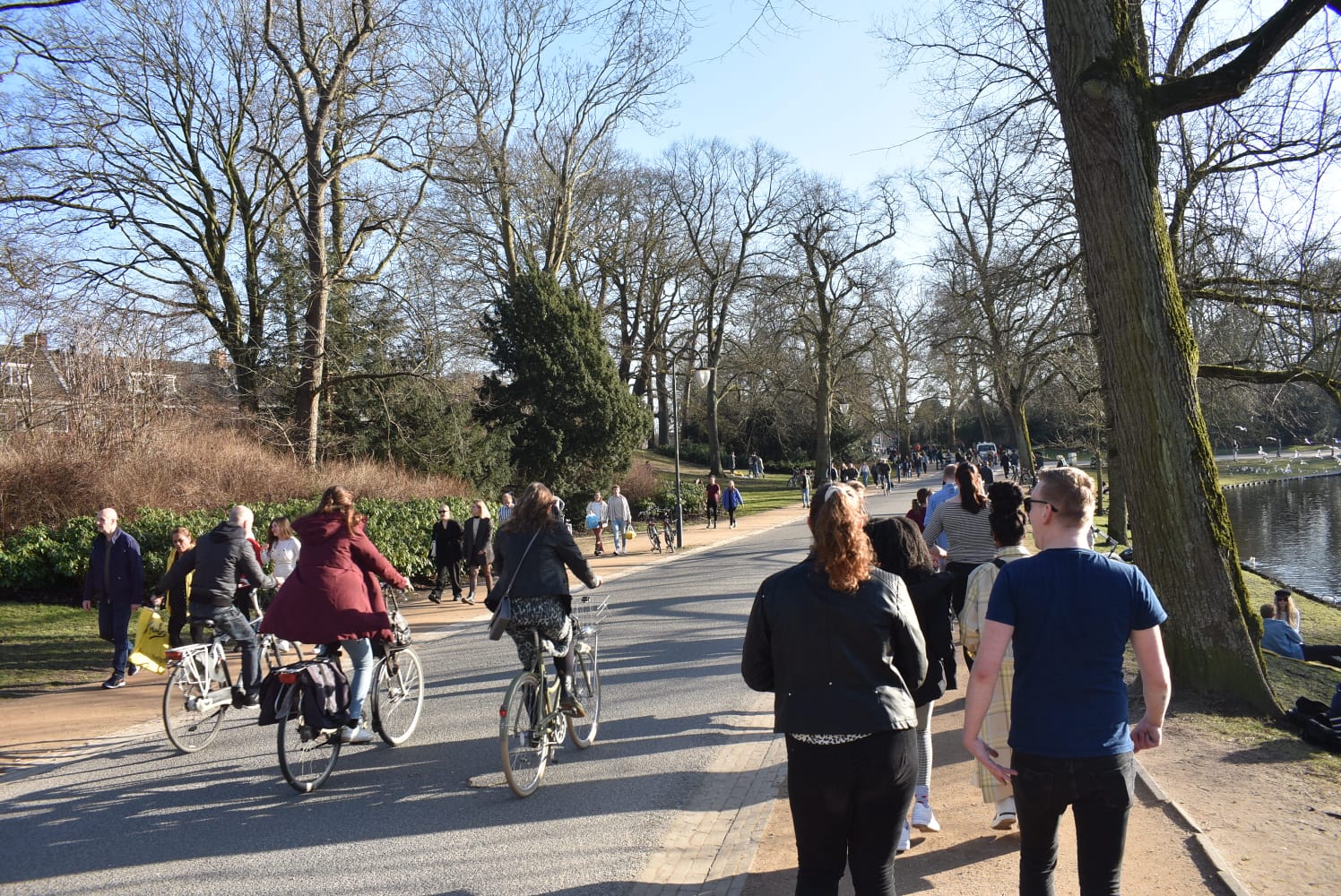 “Het doet me denken aan de zomer van 2019”, vertelt fotograaf Mike Weening van Weening Fotografie. De fotograaf staat halverwege de middag in het Noorderplantsoen. “Er zijn hier heel veel mensen die zich tegoed doen aan de warme zonnestralen. Er wordt gewandeld, gefietst, gejogd en weer anderen zitten in de buurt van de vijvers. Als je niet beter zou weten dan zou je denken dat corona voorbij is. Ik zie dat er lang niet altijd afstand wordt gehouden. De politie is wel aanwezig, maar omdat het hier zo druk is valt hier niet tegen te handhaven.”