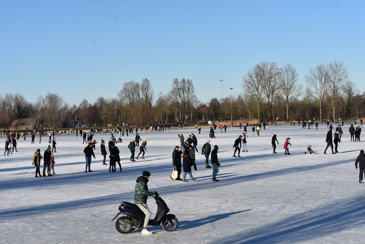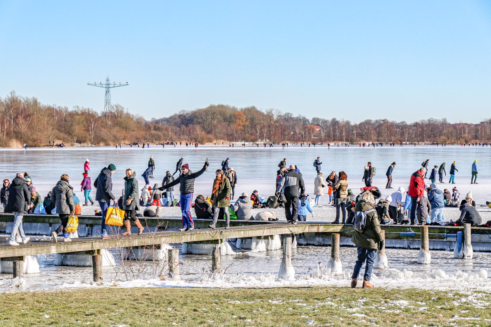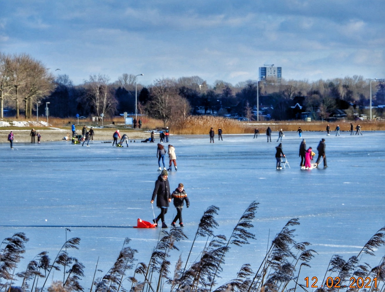 Na een nacht met strenge vorst, waarbij er in Eelde -12,4 graden werd gemeten, trokken mensen al in de vroege ochtend de ijzers onder. Vooral het Paterswoldsemeer en het Hoornsemeer zijn in trek. In het begin van de middag werd het zo druk, waarbij tevens de kwaliteit van het ijs slechter werd, dat de gemeente de oproep deed om niet meer naar het gebied te komen.