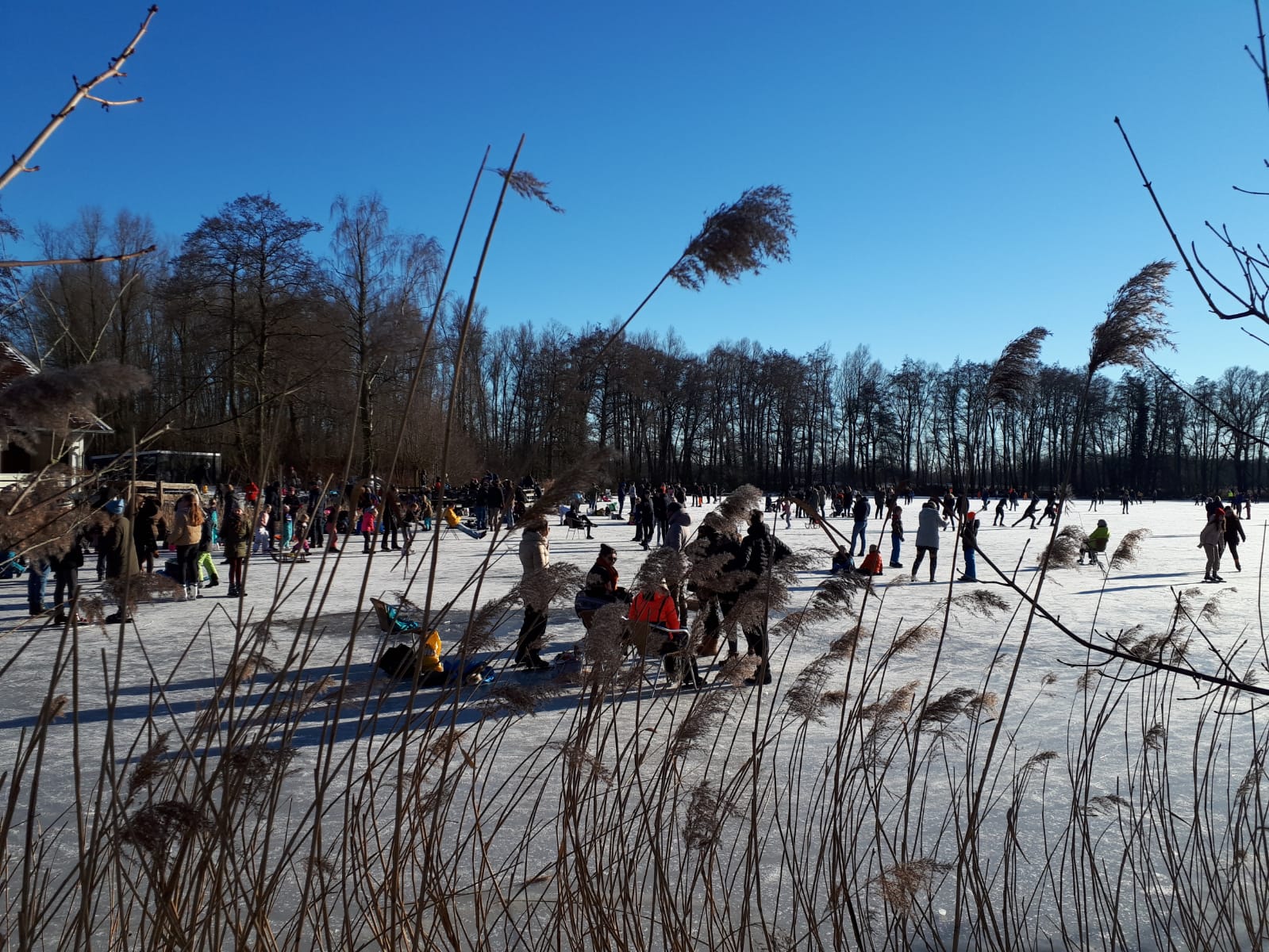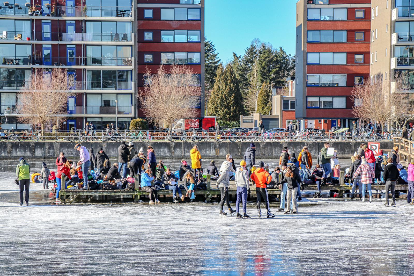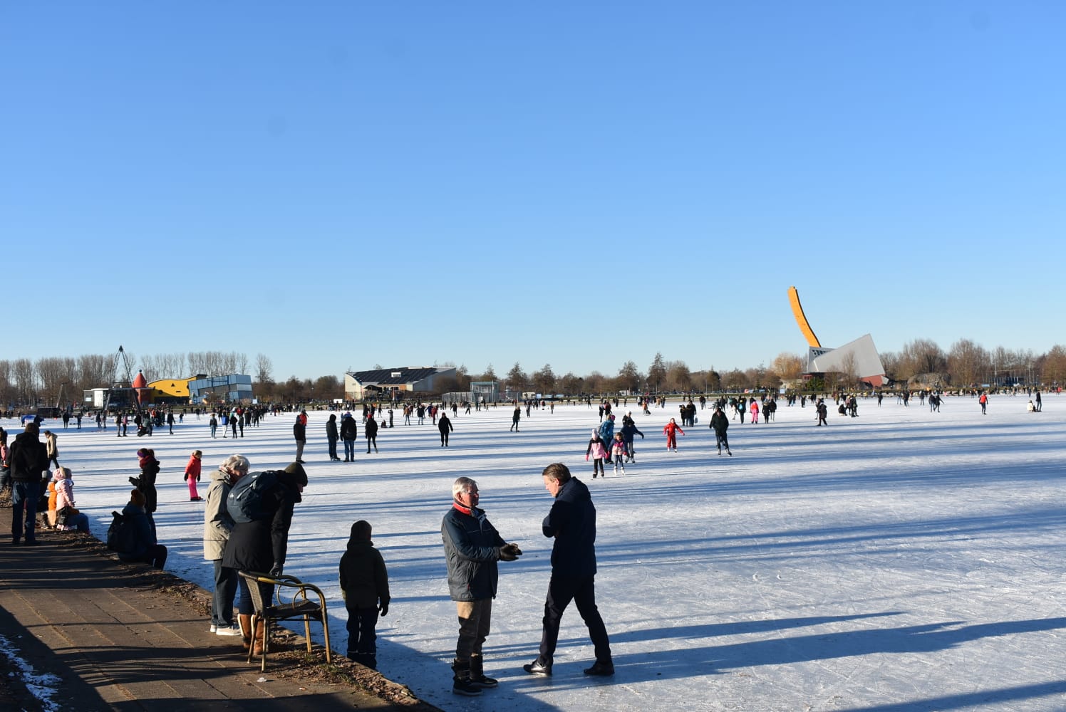 Na een nacht met strenge vorst, waarbij er in Eelde -12,4 graden werd gemeten, trokken mensen al in de vroege ochtend de ijzers onder. Vooral het Paterswoldsemeer en het Hoornsemeer zijn in trek. In het begin van de middag werd het zo druk, waarbij tevens de kwaliteit van het ijs slechter werd, dat de gemeente de oproep deed om niet meer naar het gebied te komen.