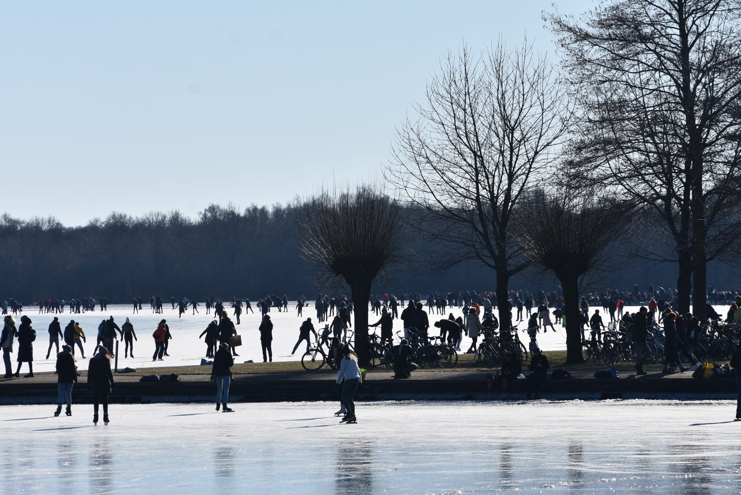 Inwoners van Groningen genieten zaterdag massaal van de koude winterdag. Er wordt geschaatst, gewandeld en chocolademelk gedronken.