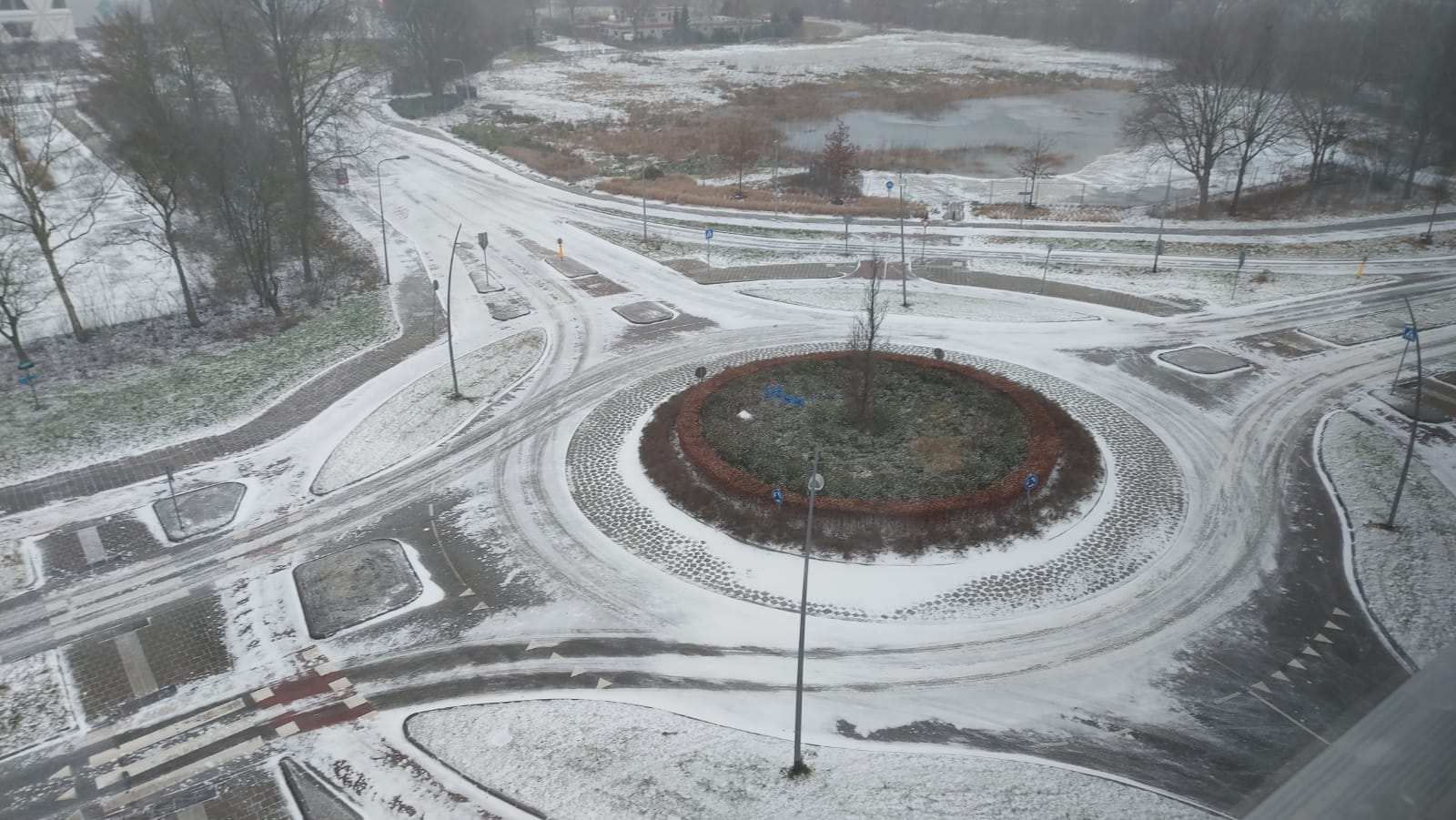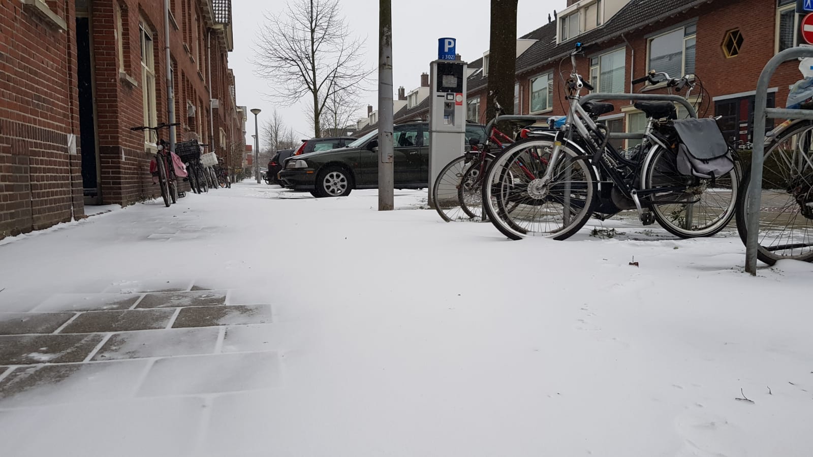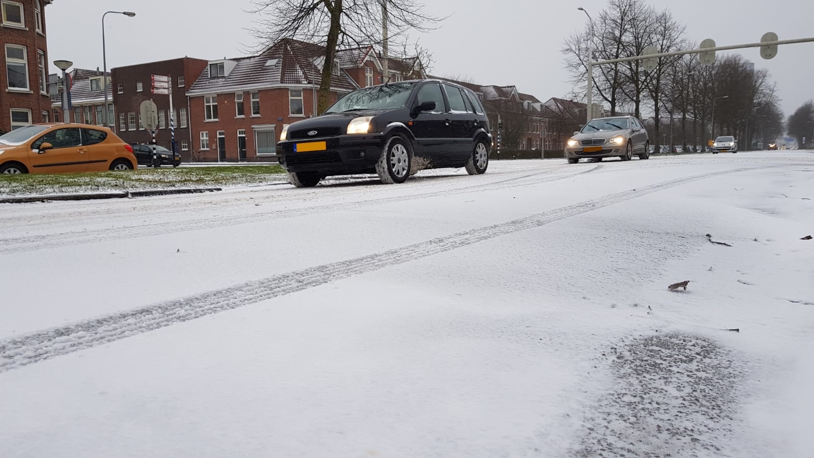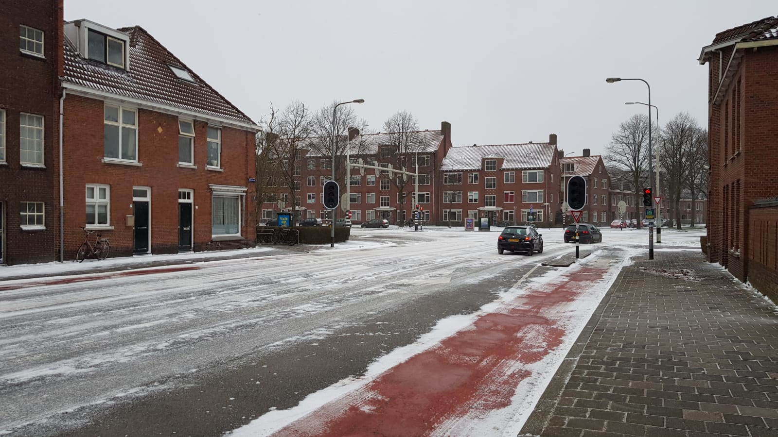 Een neerslaggebied bereikte in de nanacht Groningen. Rond 04.30 uur begon het te sneeuwen. Waar het in andere delen van het land vele centimeters opleverde blijft het in Groningen tot nu toe bij een klein laagje. “Het lijkt wel heel mooi”, vertelt fotograaf Mike Weening. “Ik merk wel dat het glad is. Ook wegen en fietspaden zijn wit en op sommige plekken is het best wel glad.”