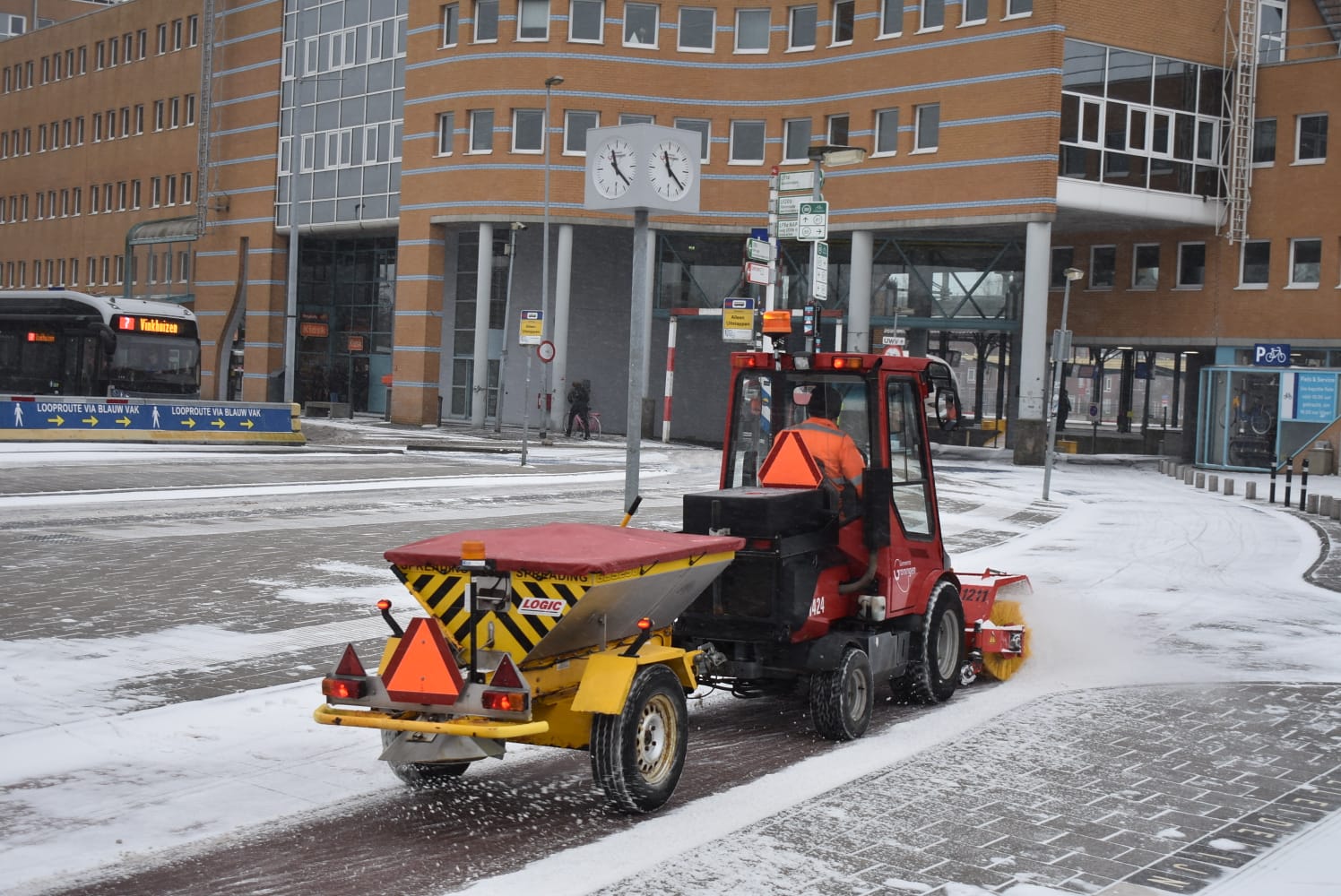 De gemeente Groningen werkt zondag met man en macht om de wegen schoon te houden. Volgens een woordvoerder is dat een hele klus.