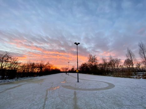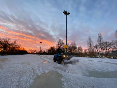 De ijsbaan ligt er glanzend bij maar ondanks dat zal de dooi ook hier de aanval inzetten. Foto: Rutger Loer