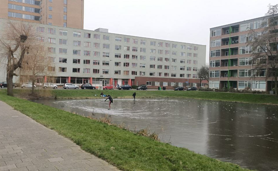 Daardoor konden de schaatsliefhebbers dinsdag het ijs op, zoals op de foto op een vijver langs de Zonnelaan in Paddepoel. Lang gaat het niet duren, want vanaf dinsdagavond (vanavond) gaat het flink dooien.