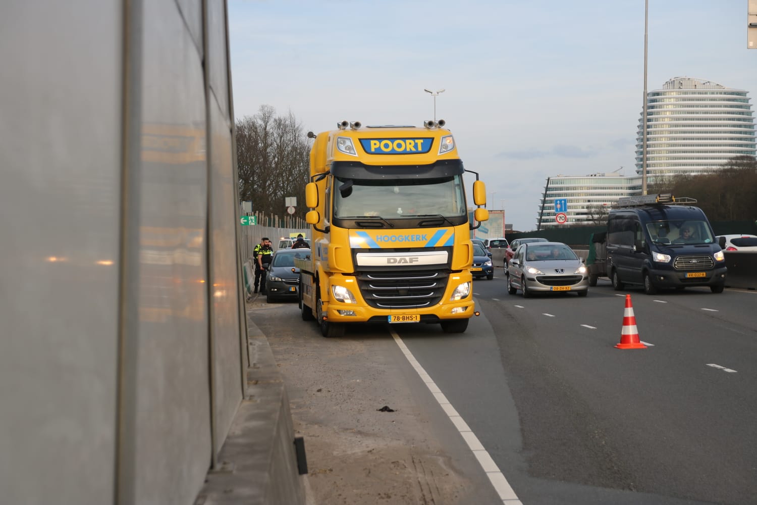 Rijkswaterstaat sloot één rijstrook korte tijd af. Inmiddels zijn alle rijbanen weer vrij en lost de file langzaam op.