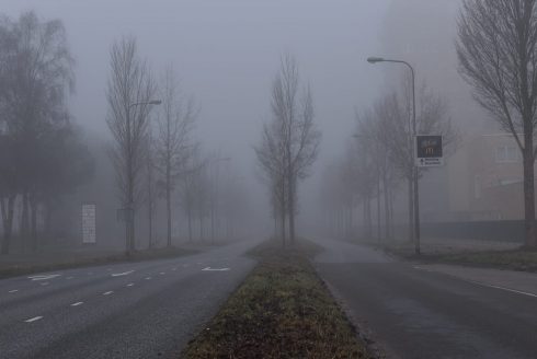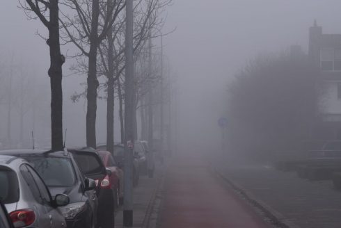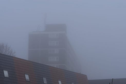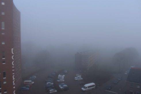 Het KNMI gaf zaterdagavond al een ‘code geel’ voor de provincie Groningen. Fotograaf Mike Weening vertelt dat het in de avonduren rond 23.30 uur al flink mistig werd. “Zondagochtend was de situatie niet veel beter. Op sommige plekken was het zicht echt beperkt. Eén van de foto’s heb ik gemaakt vanaf een flatgebouw, en dan heb je echt het gevoel alsof er een deken over de stad ligt. Ik vind het altijd een heel mooi gezicht.”