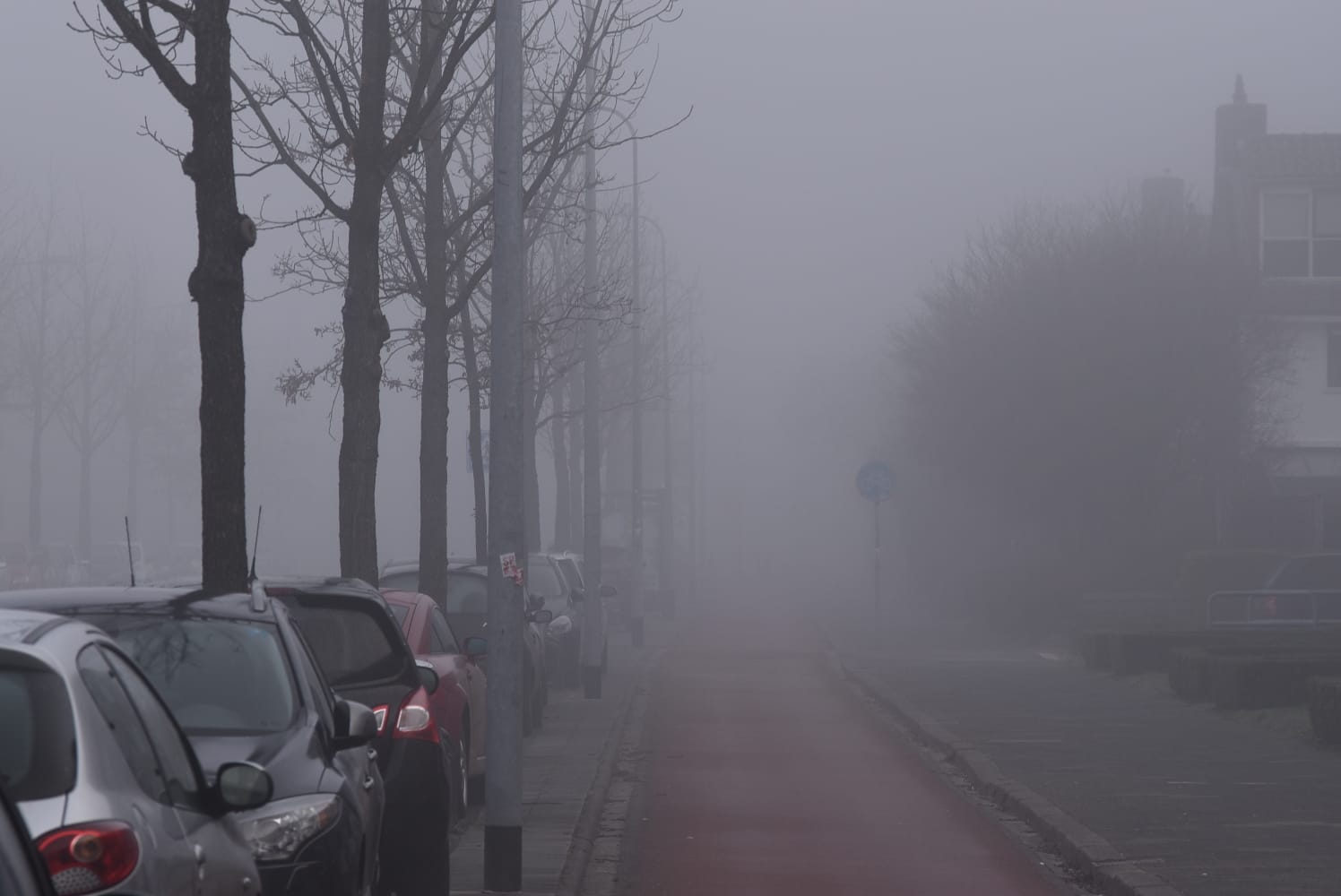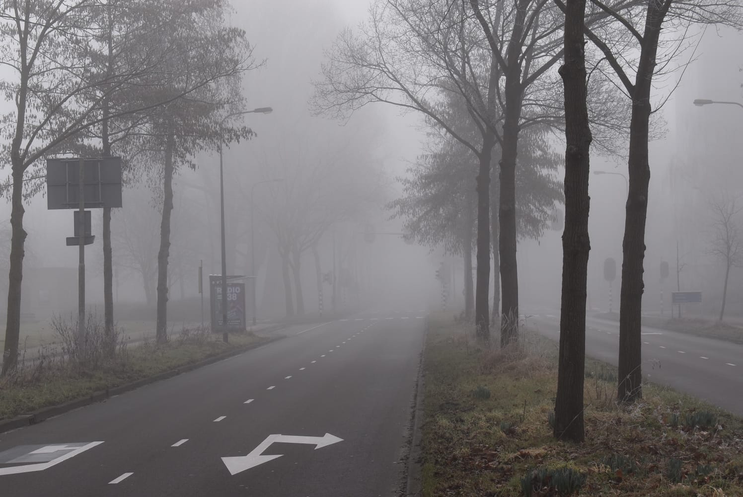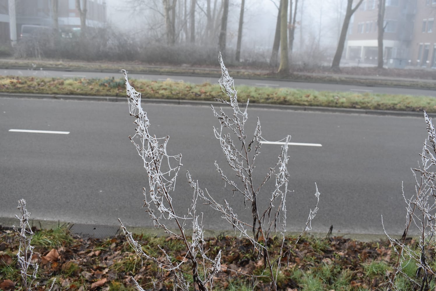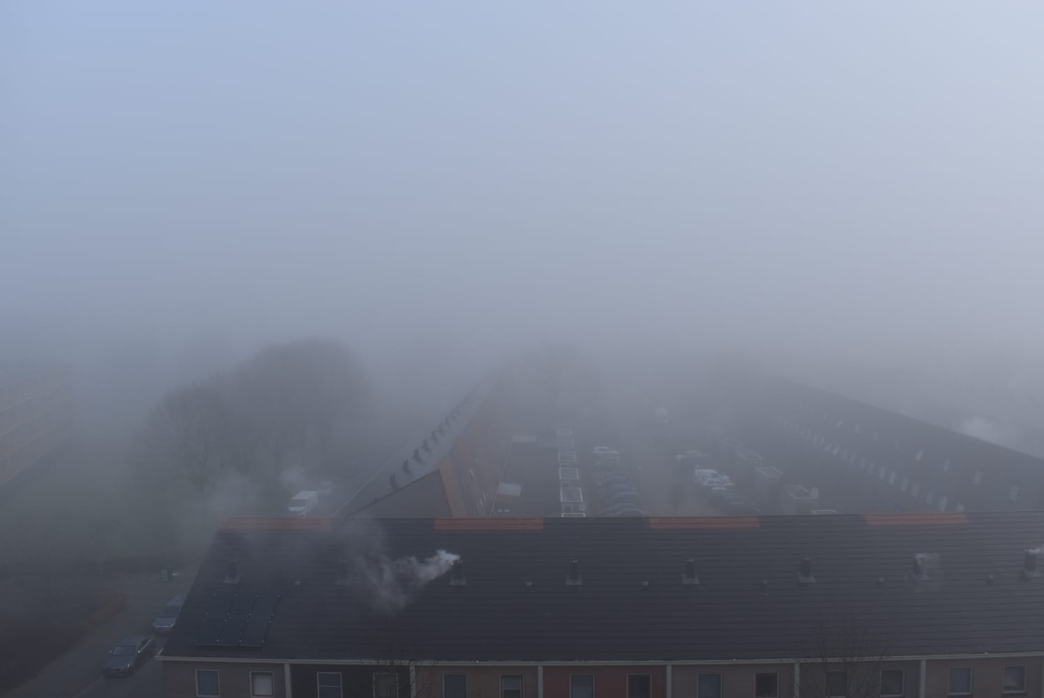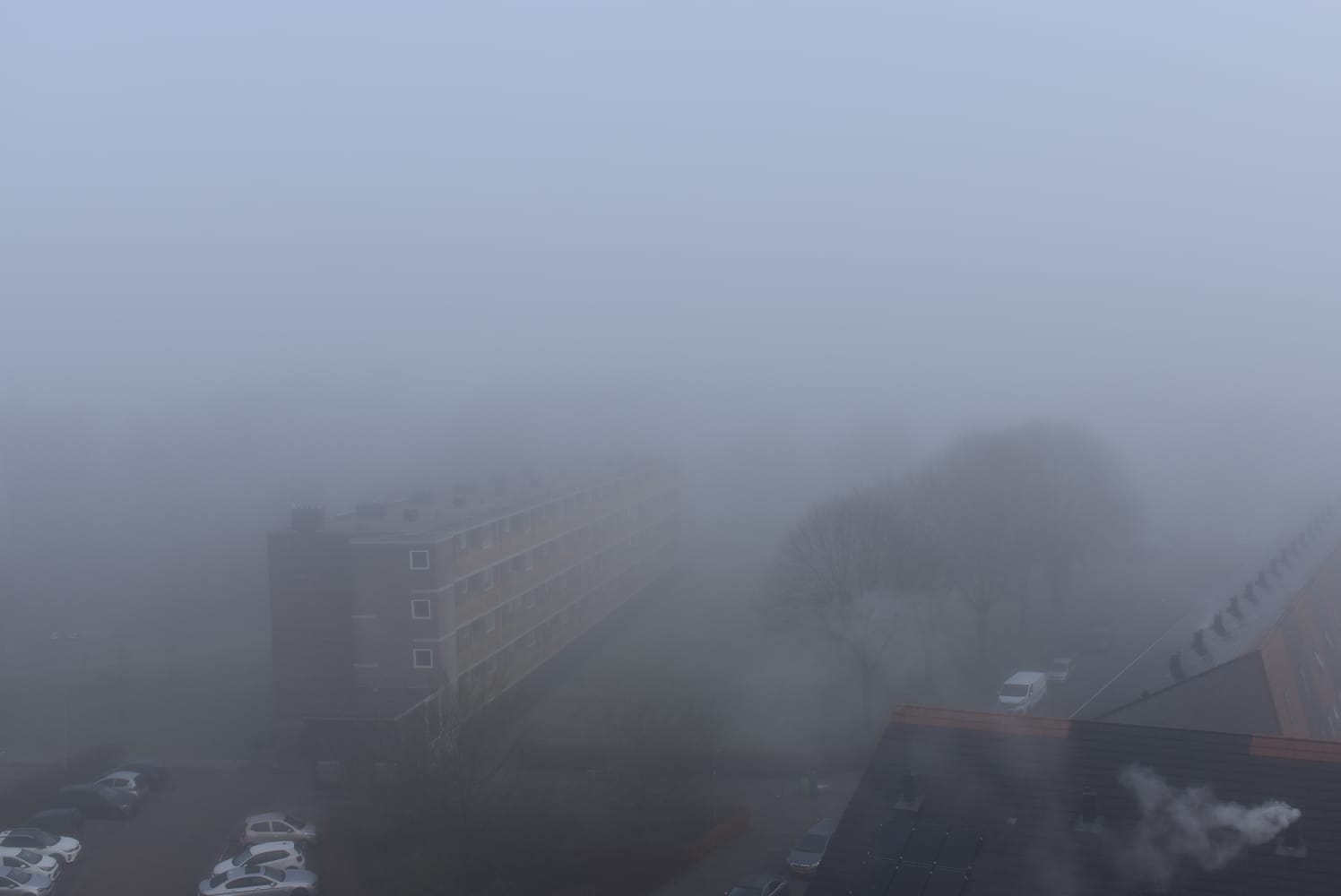 Het KNMI gaf zaterdagavond al een ‘code geel’ voor de provincie Groningen. Fotograaf Mike Weening vertelt dat het in de avonduren rond 23.30 uur al flink mistig werd. “Zondagochtend was de situatie niet veel beter. Op sommige plekken was het zicht echt beperkt. Eén van de foto’s heb ik gemaakt vanaf een flatgebouw, en dan heb je echt het gevoel alsof er een deken over de stad ligt. Ik vind het altijd een heel mooi gezicht.”