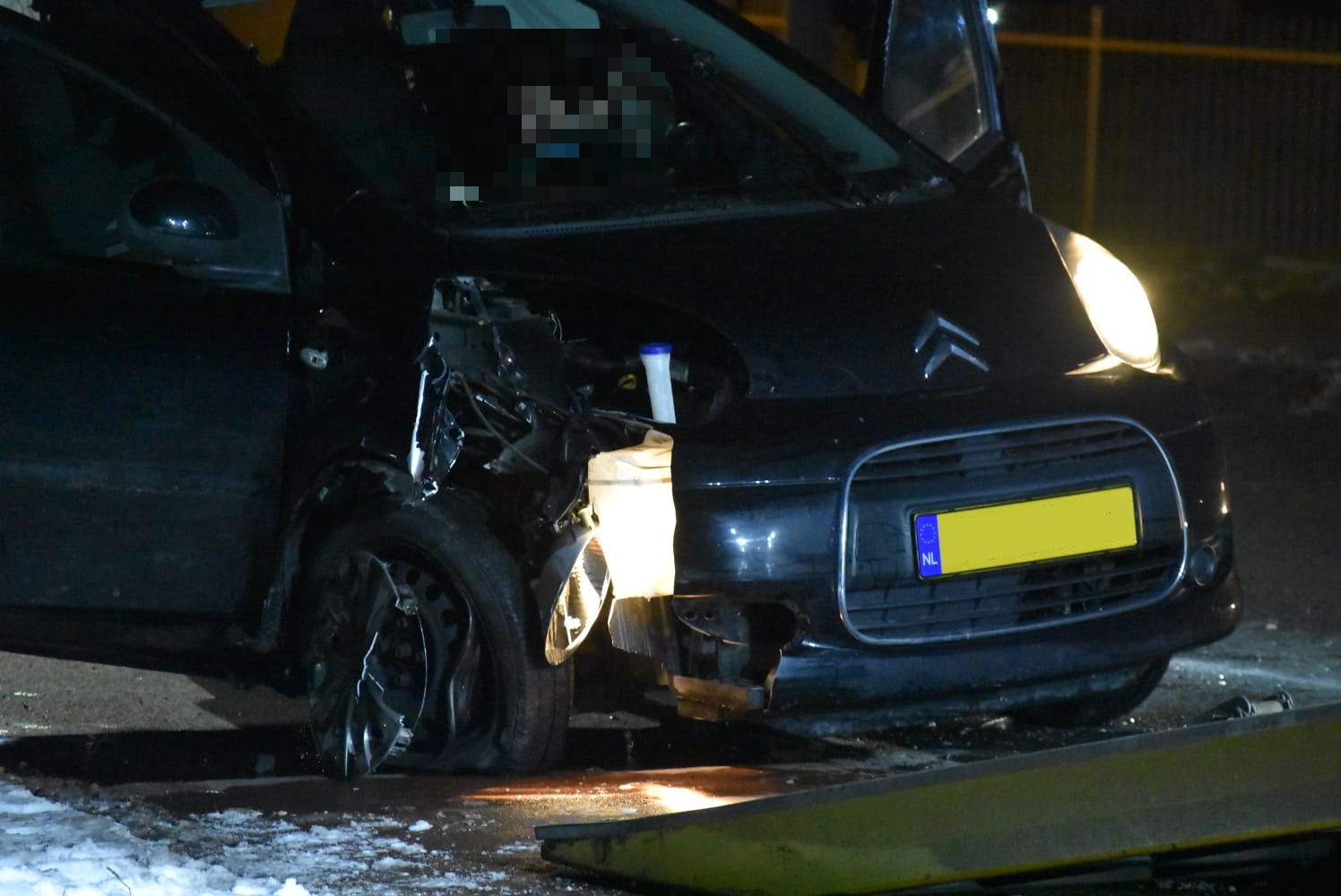 “Hoe het precies heeft kunnen gebeuren is onbekend. Het lijkt erop dat het voertuig tegen een paal is gebotst en daarbij is er flink wat schade ontstaan.” Ambulanciers hebben de bestuurder gecontroleerd op verwondingen maar zover bekend hoefde de persoon niet mee naar het ziekenhuis. De politie doet onderzoek naar de precieze toedracht.
