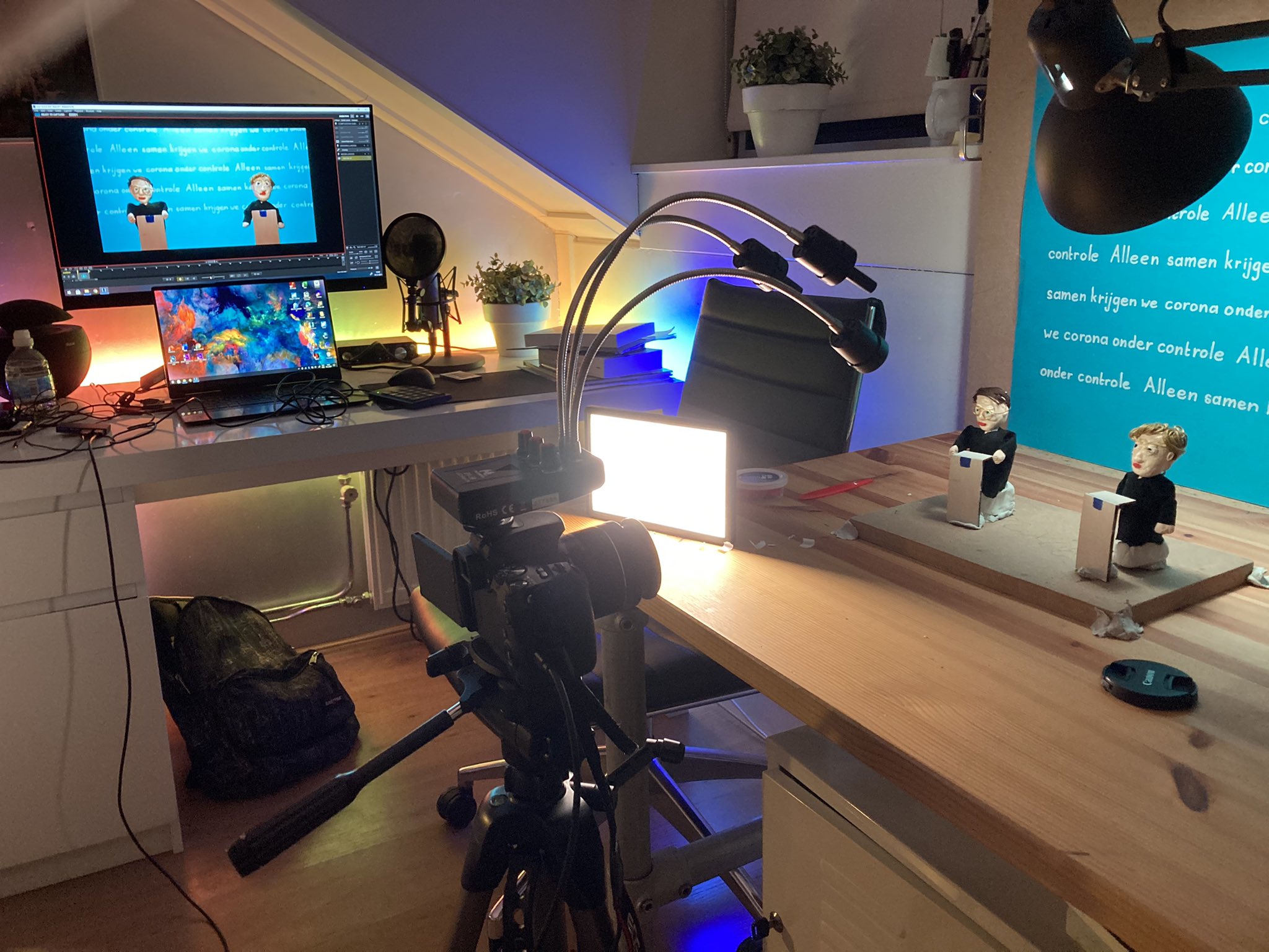 Behind the screens bij de opnames van de stop-motion film Welzijnspandemie. Foto: Pieter Lossie