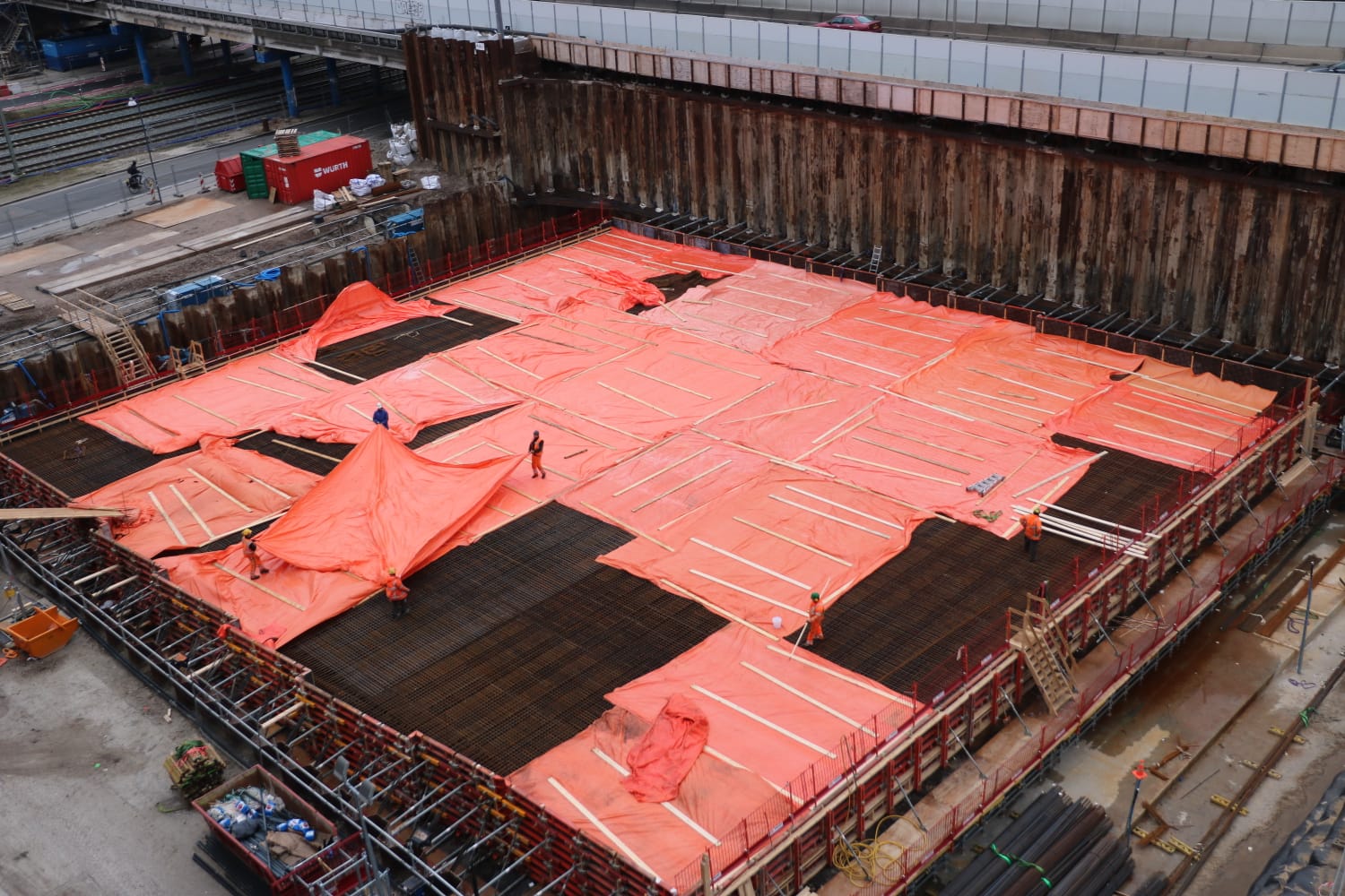 Combinatie Herepoort heeft zaterdag aan het eind van de middag de wapening van het toekomstige spoordek ten behoeve van de nieuwe ringweg met zeilen afgedekt vanwege de sneeuwval.