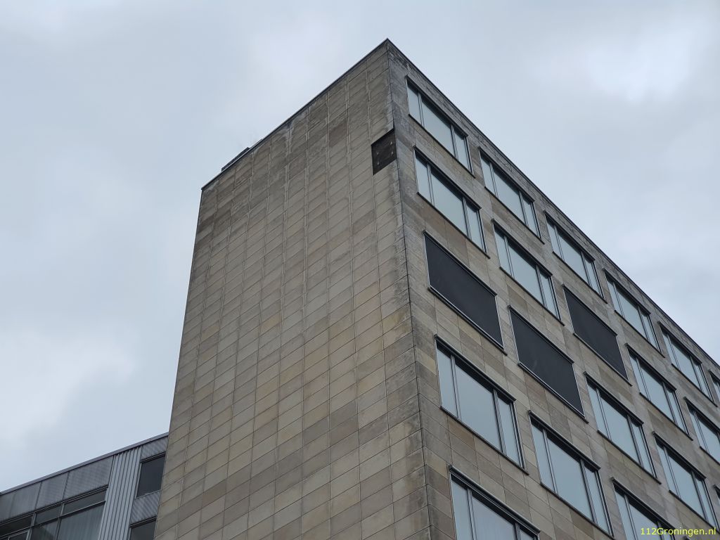 Bij het Best Western Hotel aan de Radesingel is donderdagmiddag door de harde wind een van de gevelplaten van ruim 20 meter hoogte naar beneden gekomen. Dat meldt de website 112.groningen. Er vielen geen gewonden.