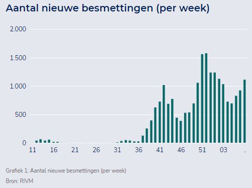 In vergelijking met de vorige update is er volgens de GGD een geringe verschuiving te zien in de leeftijdsgroepen waar besmettingen worden aangetroffen. Een toename is te zien in de groep 20 tot 29-jarigen. In de leeftijdscategorie 0 tot 14 jaar gaat het om een besmettingsniveau van 8 procent, in de groep 15 tot 19 jaar om 9 procent en in de categorie 20 tot 29 jaar om 22%. Dit was vorige week 19%. In de categorie 30 tot 64 jaar ligt het percentage op 45% en in de groep ouder dan 65 jaar om 16%.