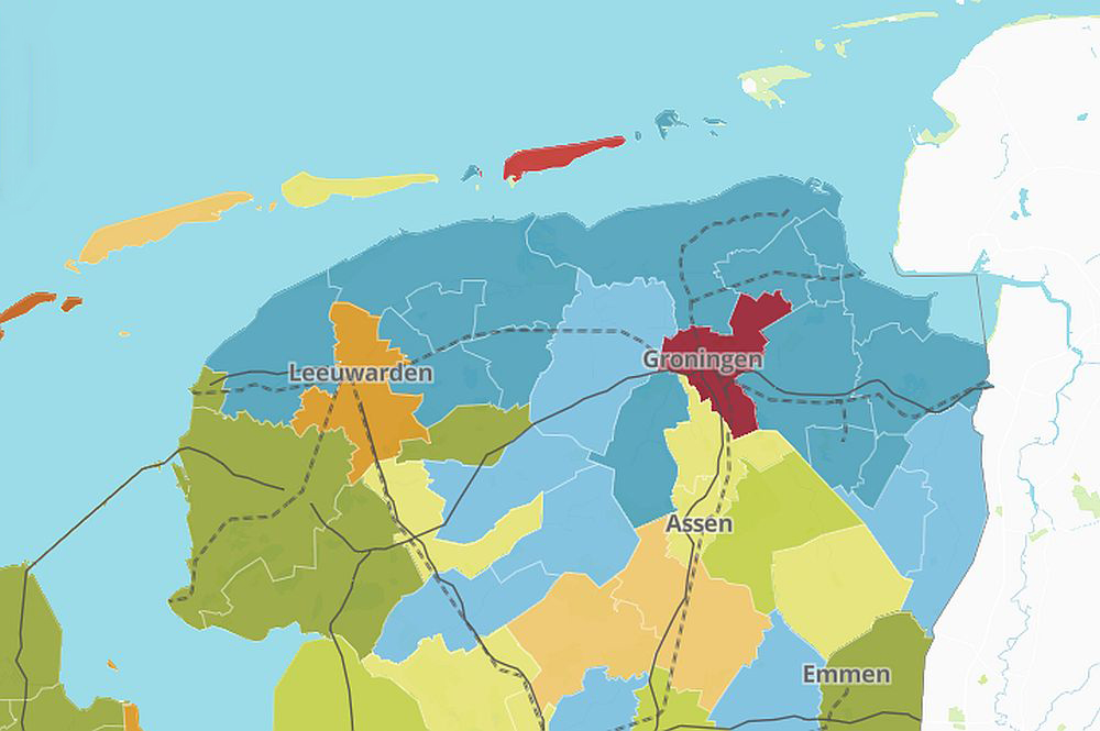 Groningen staat op plek dertig in de Top-40 van de meeste ‘verhitte’ gemeentes op de woningmarkt. In Noord-Nederland steekt de gemeente er echter met kop en schouders bovenuit. Dat blijkt uit de ‘hittekaart’ van het Bouwfonds Gebiedsontwikkeling (BPD).