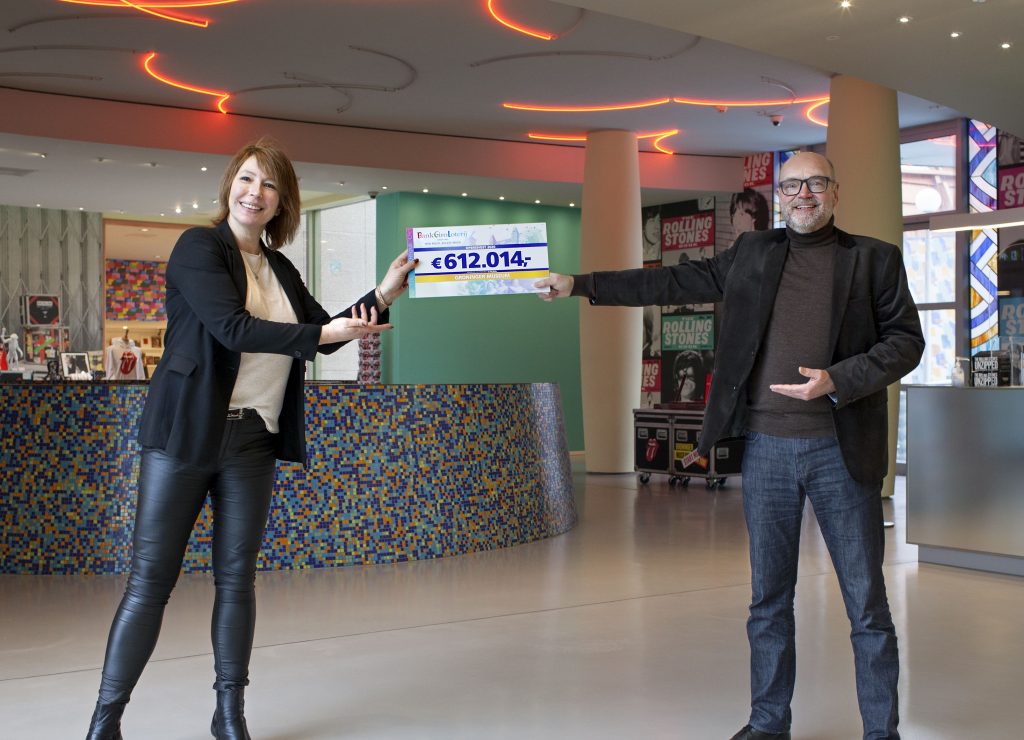 Het Groninger Museum mocht maandagmiddag een cheque van 612.014 euro in ontvangst nemen van de BankGiro Loterij. Het leeuwendeel van deze bijdrage, ruim 300.000 euro, werd bij elkaar gespeeld door deelnemers aan de loterij.