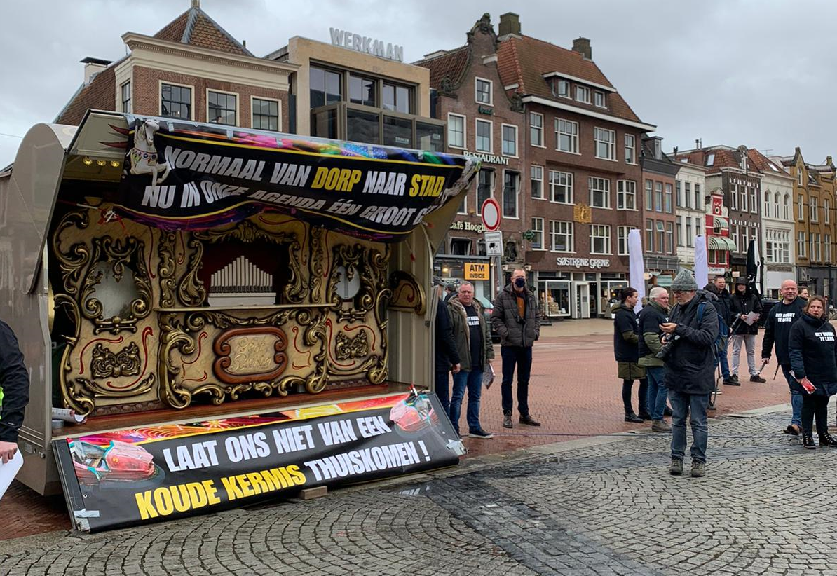 Noordelijke kermisexploitanten hebben donderdag actie gevoerd op de Grote Markt omdat zij door de coronamaatregelen al ruim een jaar geen inkomsten meer hebben.